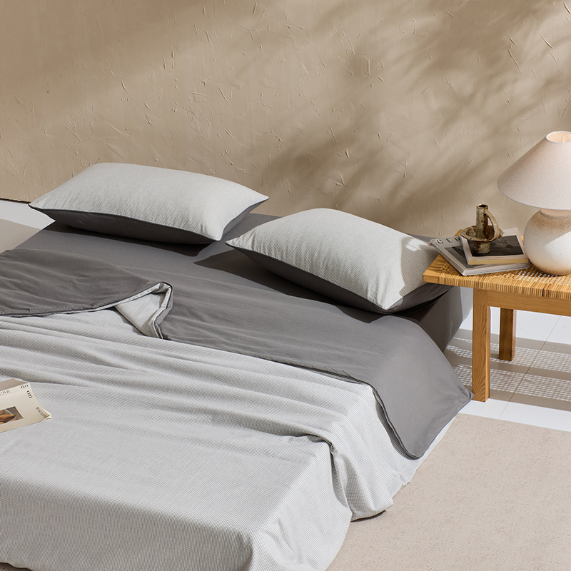 LADYCOCO可可家居 2025新款针织+梭织夹棉四件套-滚绳款 星羽皱 格子灰色