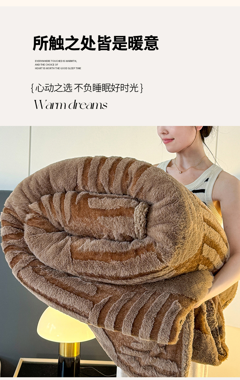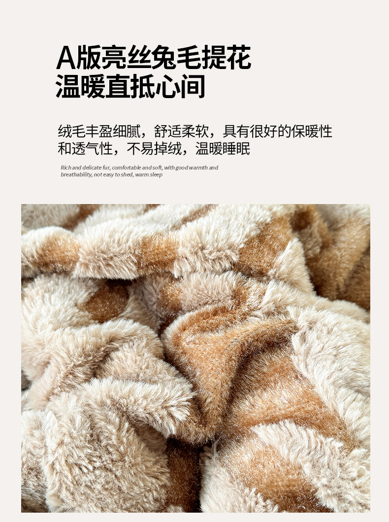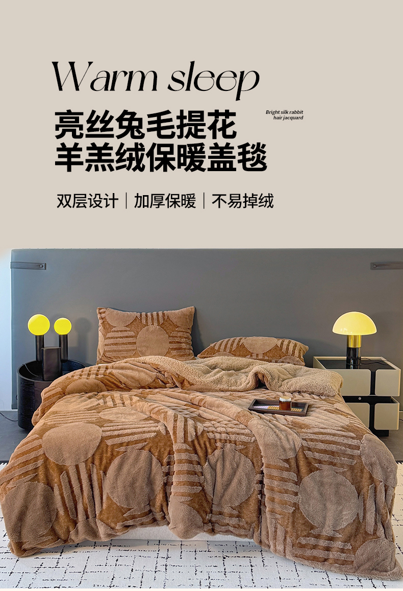 商品名称:枋梢家纺 2025新款亮丝兔毛绒兔毛提花北欧几何羊羔绒 双层加厚保暖盖毯 居家午睡保暖毯 几何-咖色