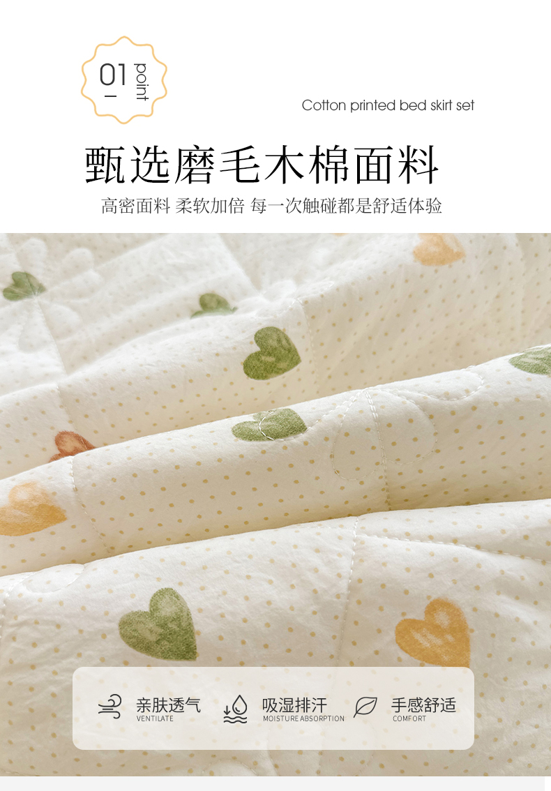 (总)十个点家纺 2025新款加厚磨毛木棉床裙三件套-绫罗系列,爱意萌萌,贝贝熊,格桑花,海棠花,蝴蝶兔,花千骨,米兰,木棉花,山茶花,同心结,心相印,心愿-米