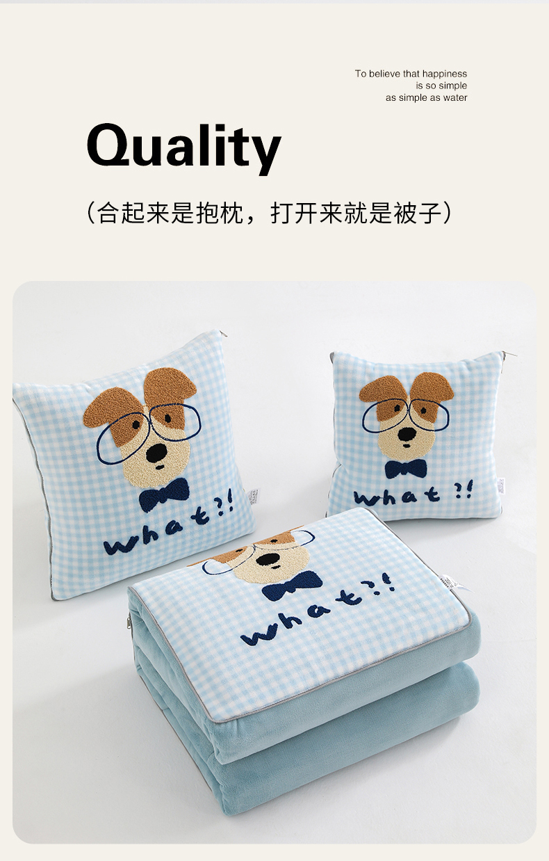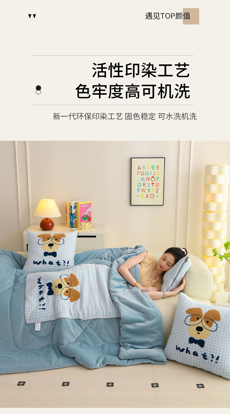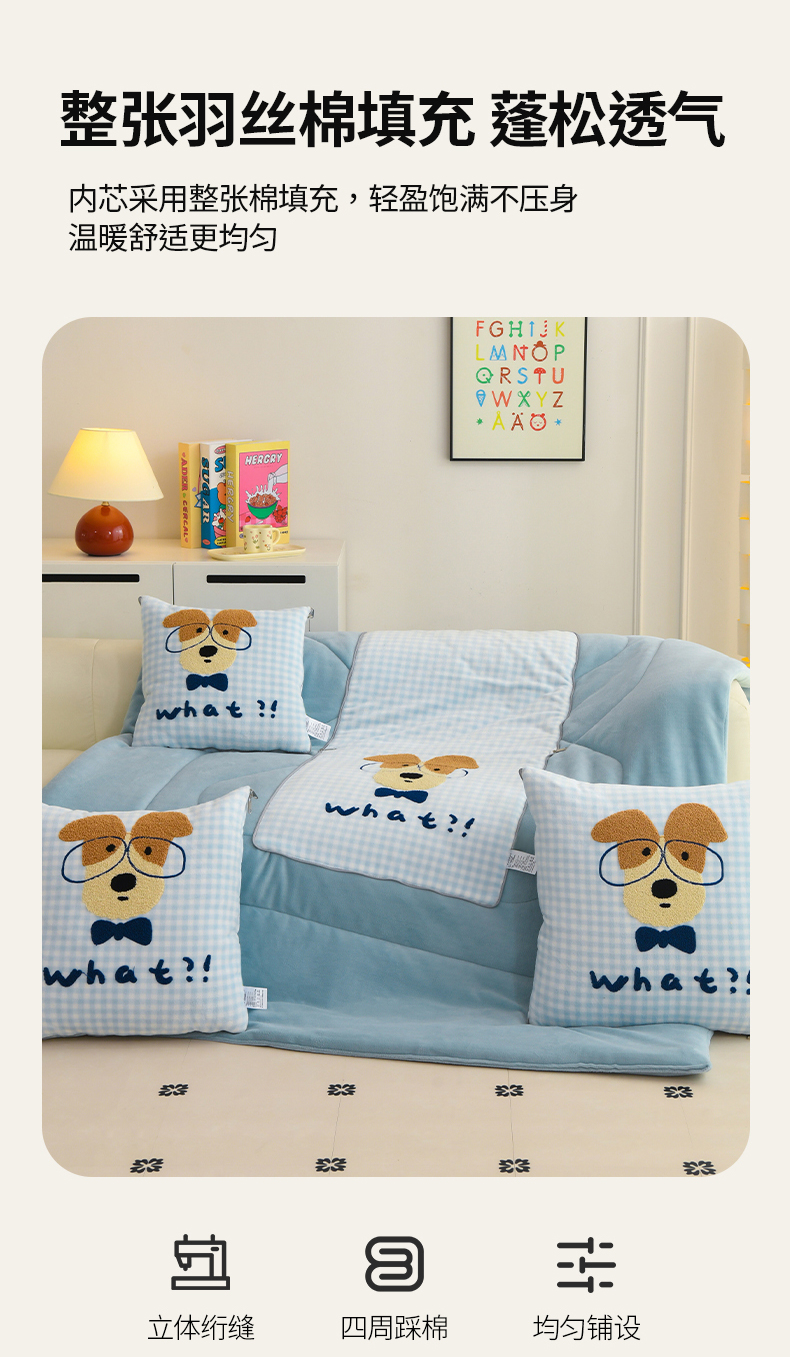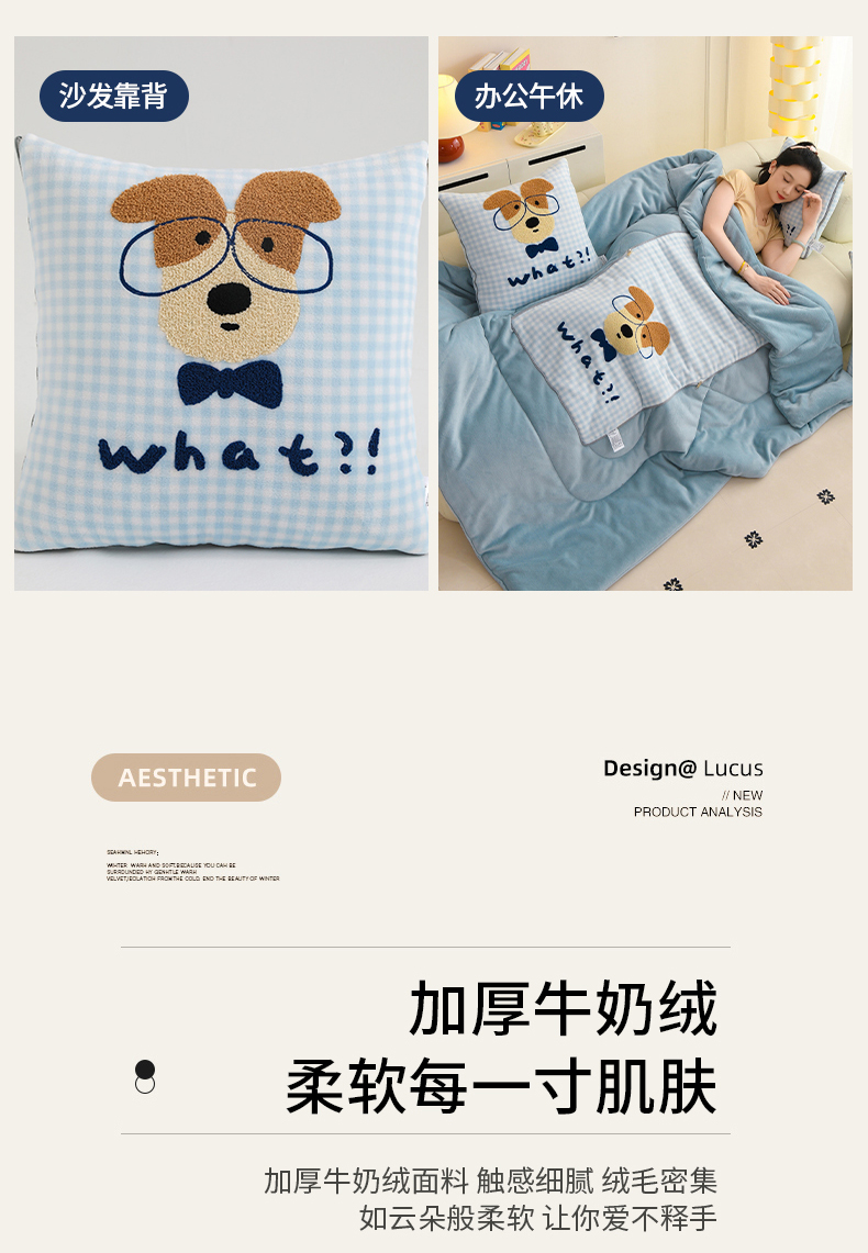 商品名称:翰轩家居 2025新款卡通牛奶绒抱枕被毛巾绣系列 眼镜狗-蓝