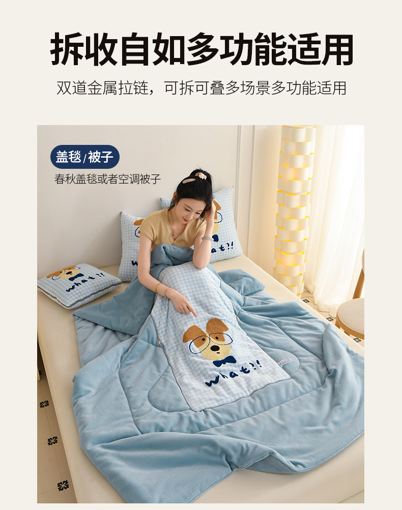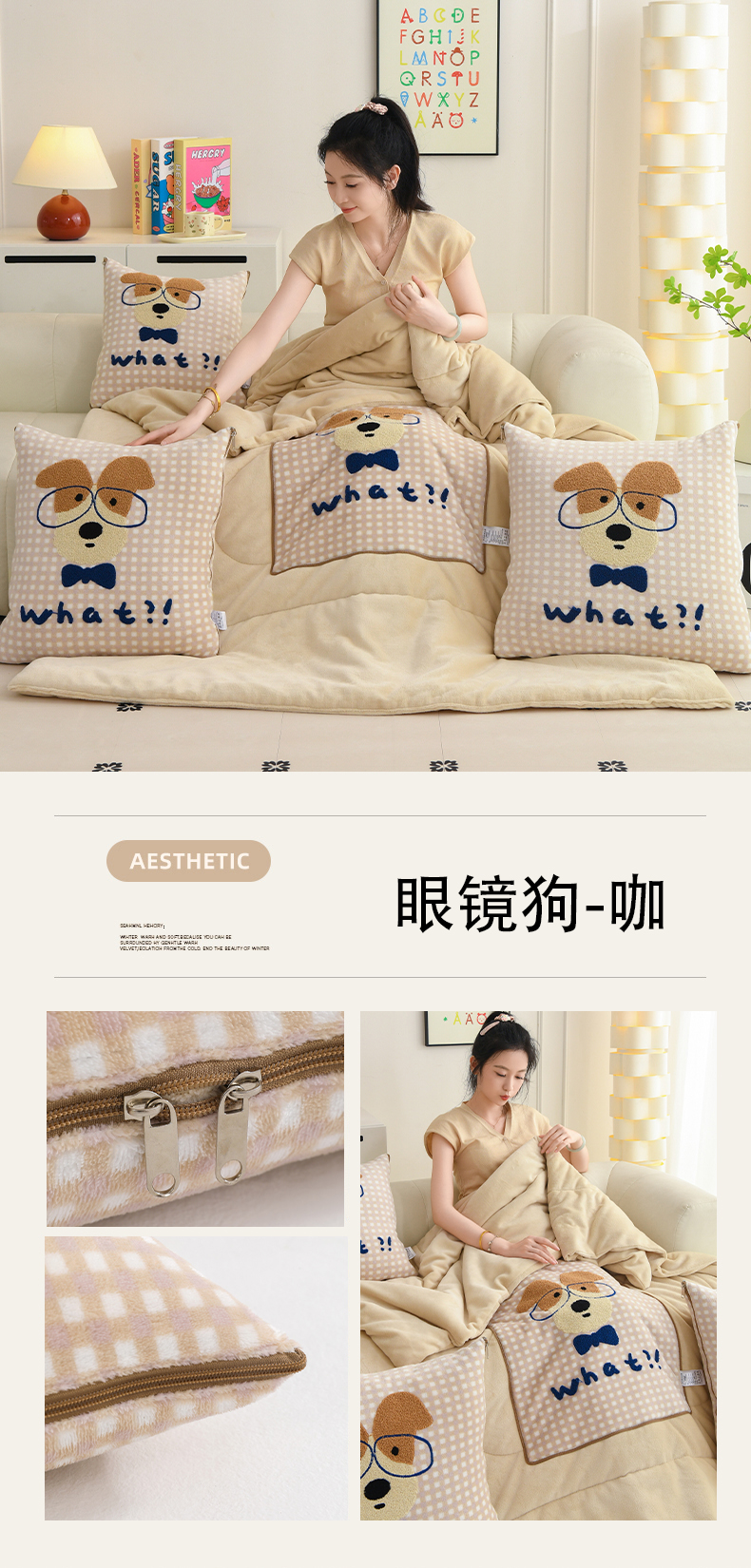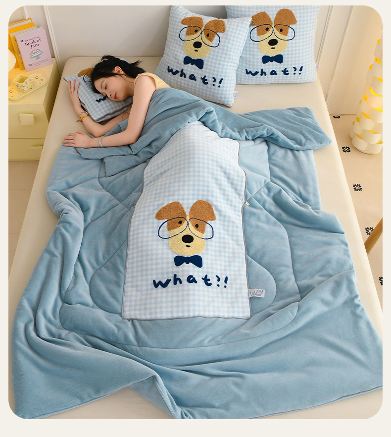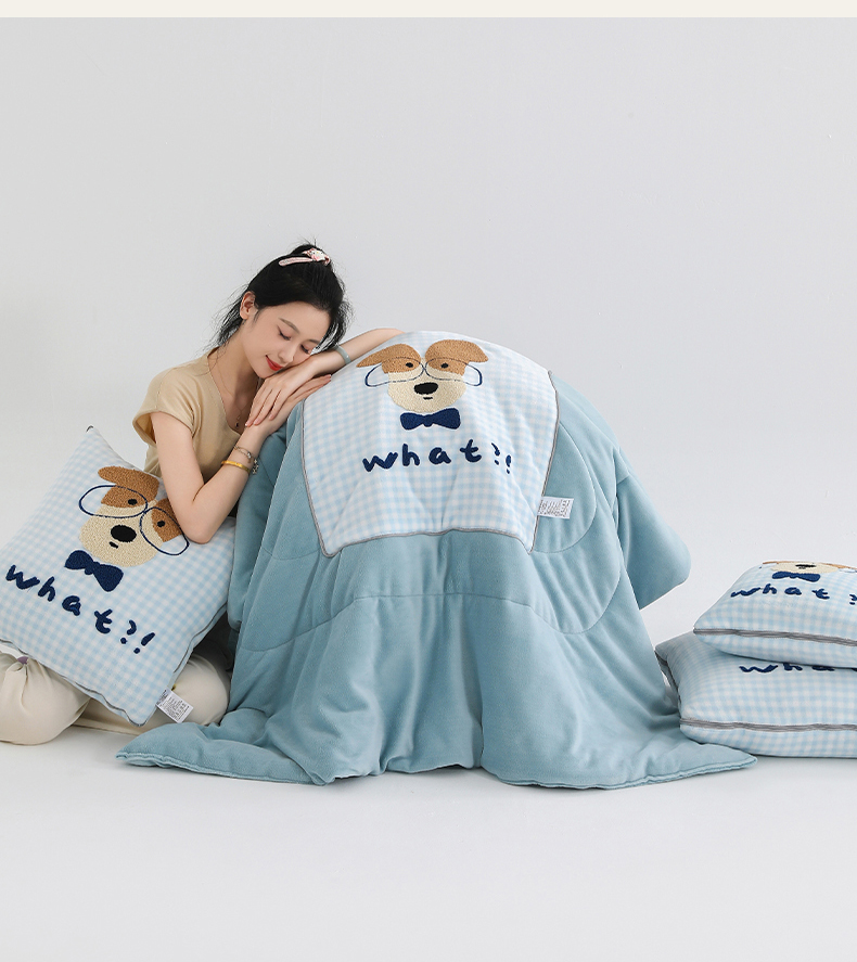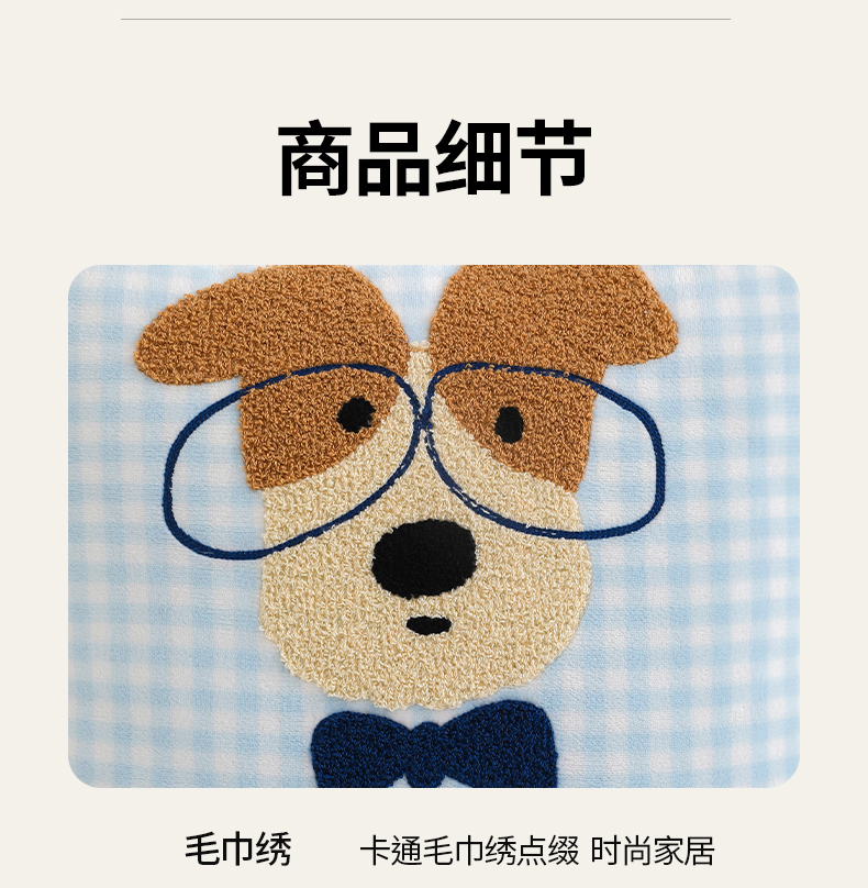 商品名称:翰轩家居 2025新款卡通牛奶绒抱枕被毛巾绣系列 眼镜狗-蓝