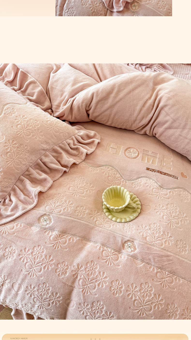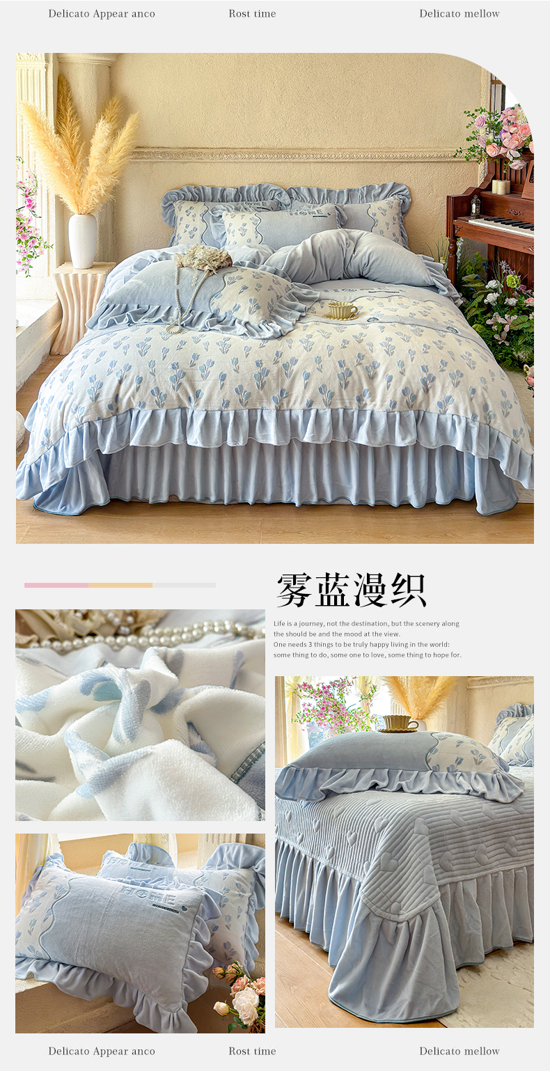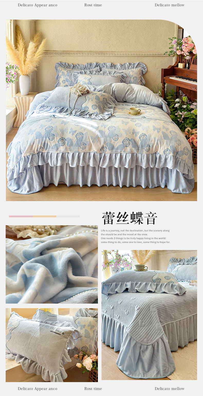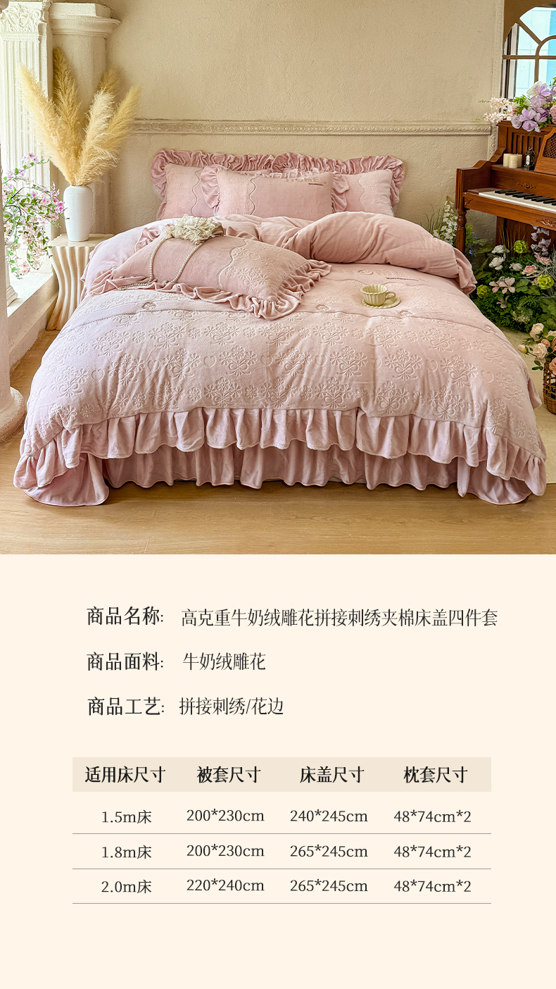 (总)宜凡家纺 2025新款兔绒提花牛奶绒夹棉床裙四件套,爱心 少女粉,爱心 粉紫,爱心 驼色,蝶舞 大红,蝶舞 米色,蝶舞 浅紫,蝶舞 玉色,简爱 苍青,简爱 豆沙紫,简爱 玉色,樱桃 苍青,樱桃 豆沙紫,樱桃 奶油白
