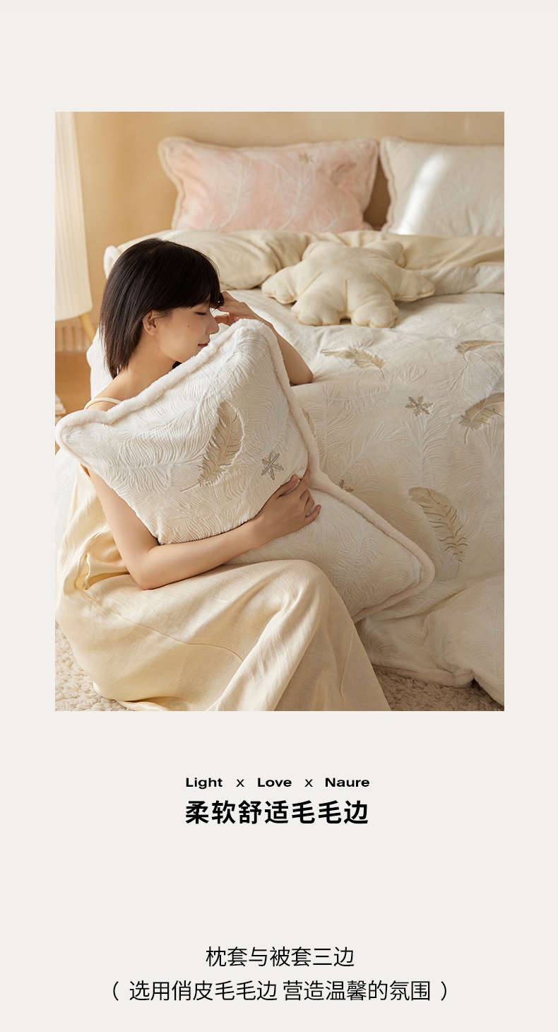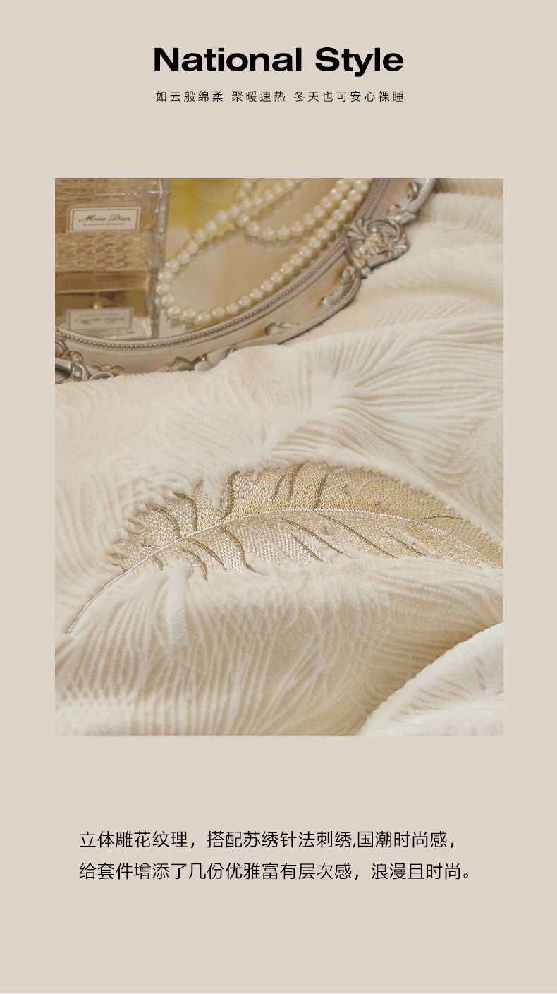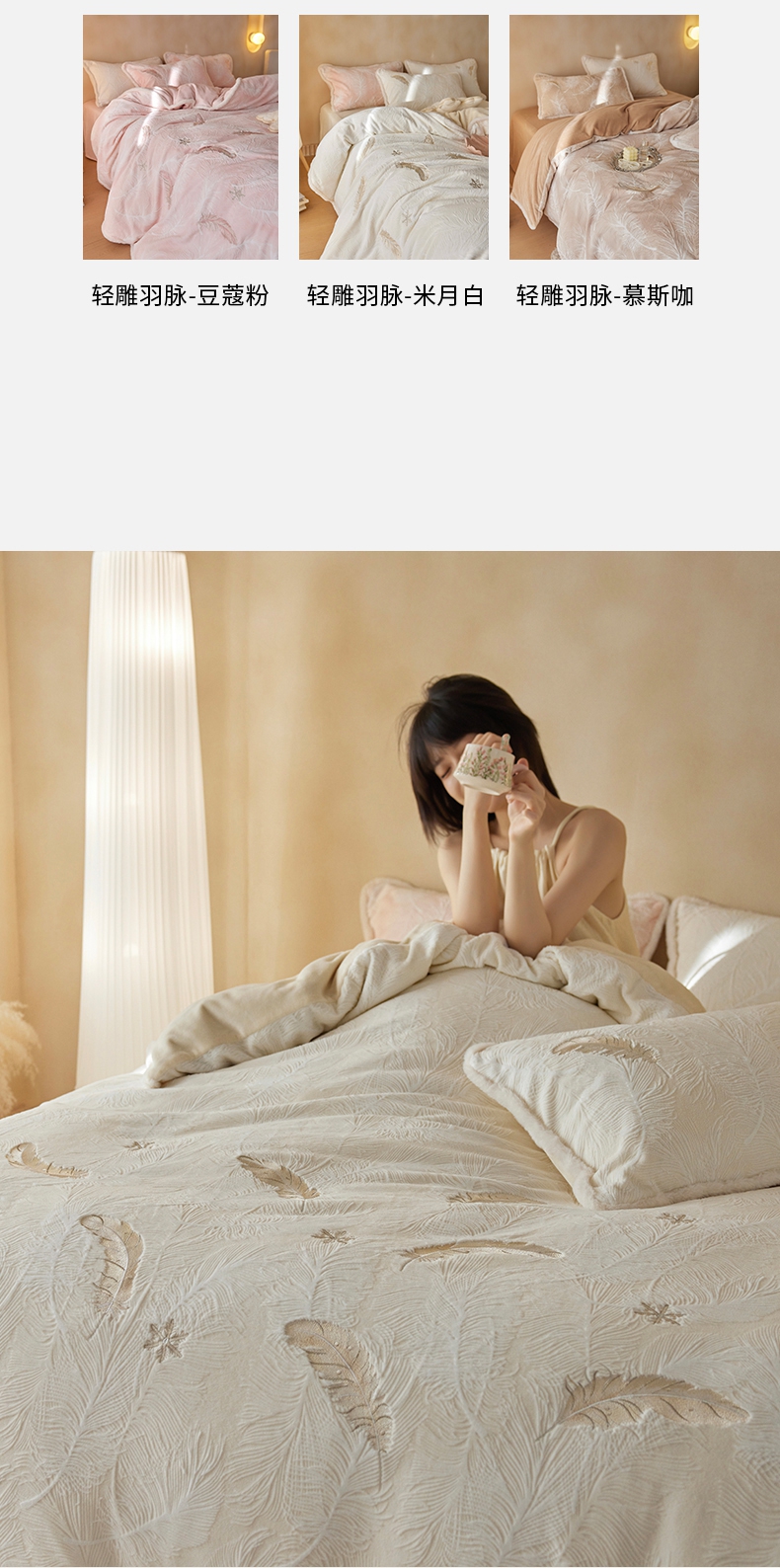 当前位置: 91家纺网 > 商品网购 > 床品套件 > 四件套 > 牛奶绒四件套 > 风向标家纺 2025新款A类立体烂花牛奶绒四件套-羽脉系列(风格二) 轻雕羽脉-米月白