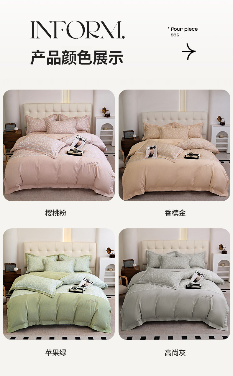 (总)OL家纺 2025新款亲肤丝加棉提花四件套,巴黎舞曲-兰金,璀璨年华-西瓜红,淡雅芬芳-水绿,迪丽娜 紫驼,费列罗-金灰,费列罗-兰豆沙,贵族豪情-奶咖,花语寻梦-粉玉,花悦怡情-炫兰,华丽盛典-卡其灰,喀秋莎-灰绿,蜜月花期-夕阳红,蜜月花期-象牙玉,莫奈情怀-浅兰,纽约风情-银灰,欧典风尚 驼色,青春如歌-古典绿,青春如歌-金灰,奢华古典 银粉,盛世繁华-咖驼,双喜龙凤-大红,双喜龙凤-砖红,维纳斯-古典绿,馨香甜梦-洋红,优雅迷情 浅兰