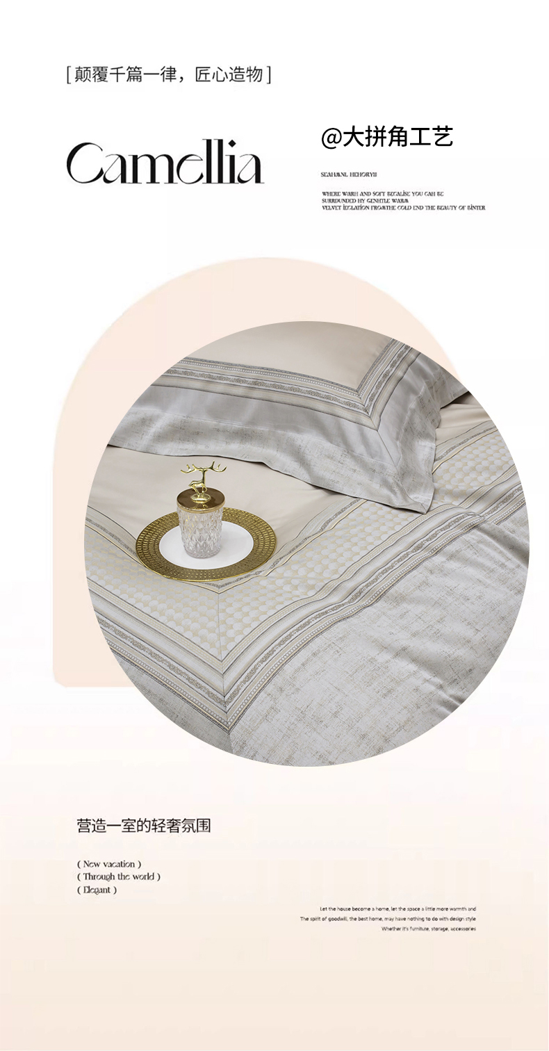 商品名称:OL家纺 2025新款天丝棉拼角四件套-爱丽斯娜(控价1.5/1.8标准被套折券后498元!!!) 爱丽斯娜-香槟金
