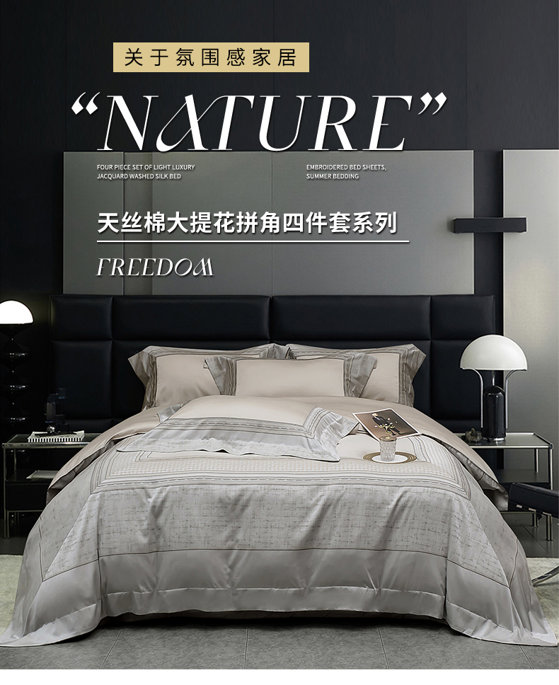 (总)OL家纺 2025新款天丝棉色织大提花四件套系列,绯色时空-紫,绯色时空-棕,派对时光