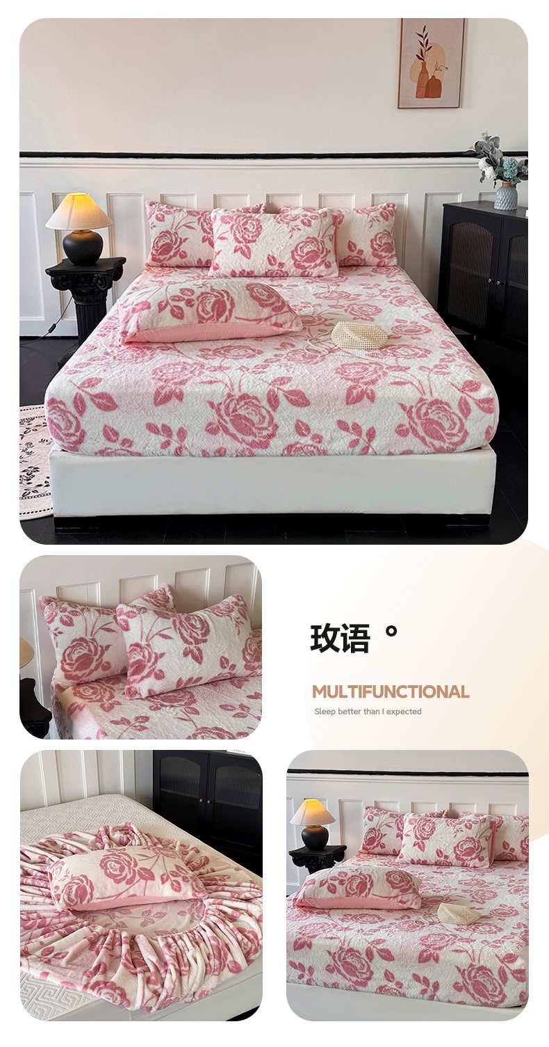 梵克保罗 2025秋冬新款直播热卖高克重加厚轻奢法式獭兔毛绒牛奶绒美拉德风单床笠单枕套 玫语