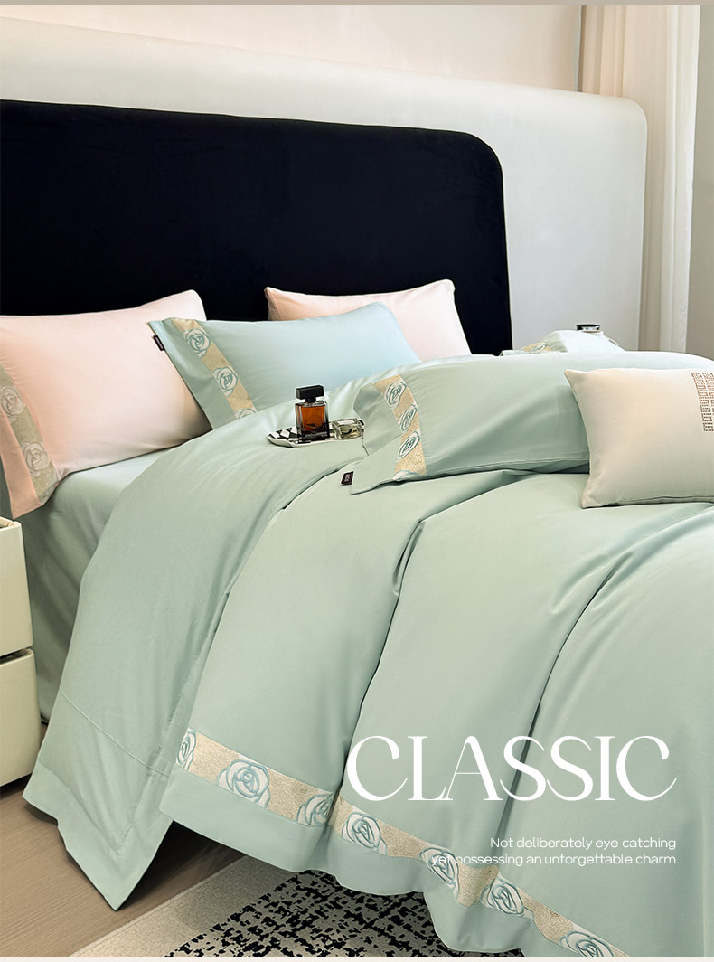 (总) 2025春夏长绒棉四件套纯棉全棉轻奢风床单被套重工刺绣床上用品,芊羽梦-白粉,芊羽梦-茶绿,芊羽梦-黛紫,芊羽梦-慕蓝,芊羽梦-颜粉