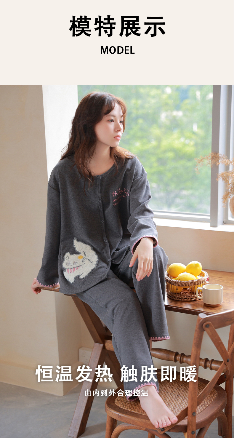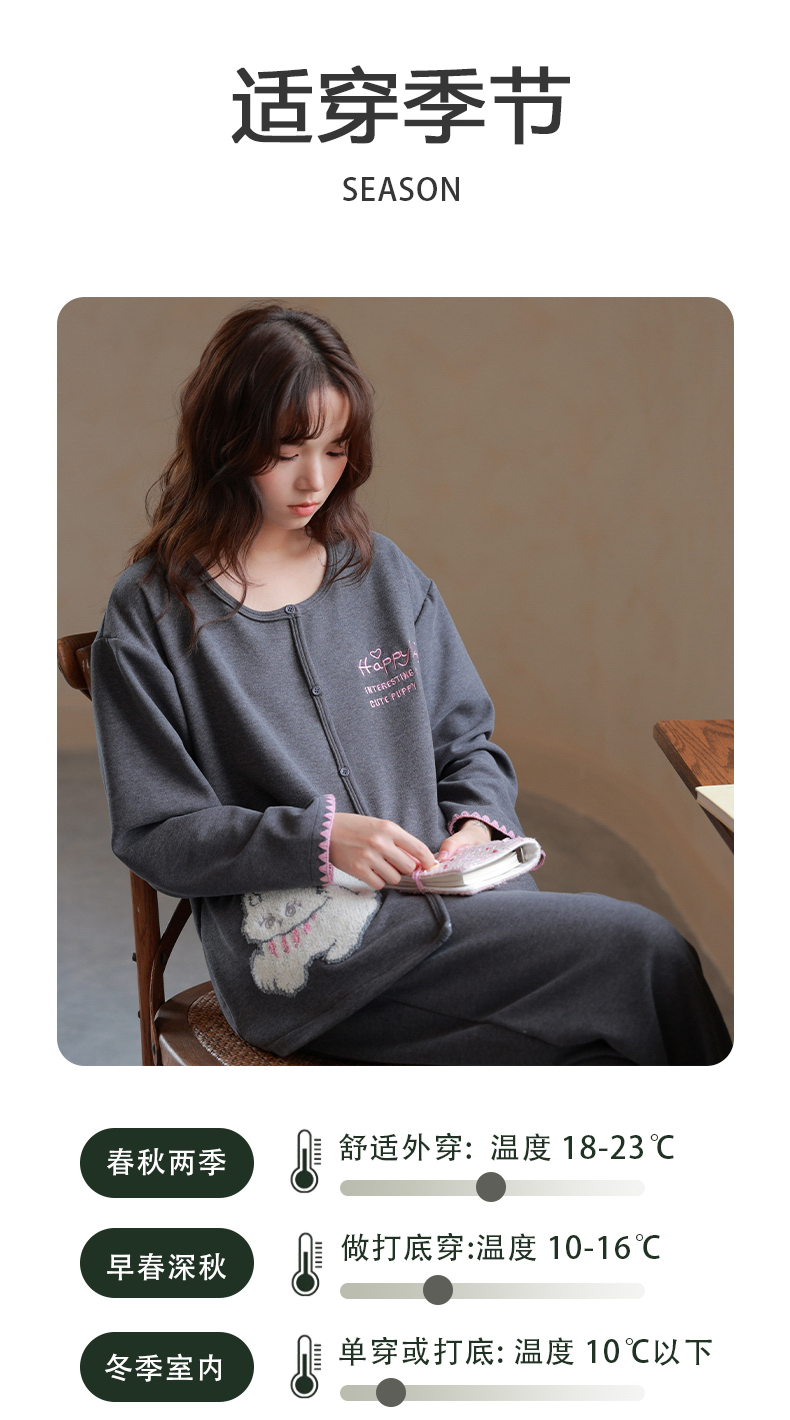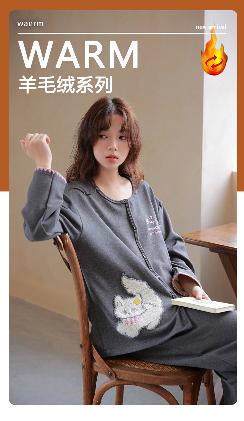 商品名称:洛兰沙家居馆 2025新款睡衣女长袖新款春秋双层羊绒德绒可外穿卡通开衫家居服套装韩版秋冬 42312