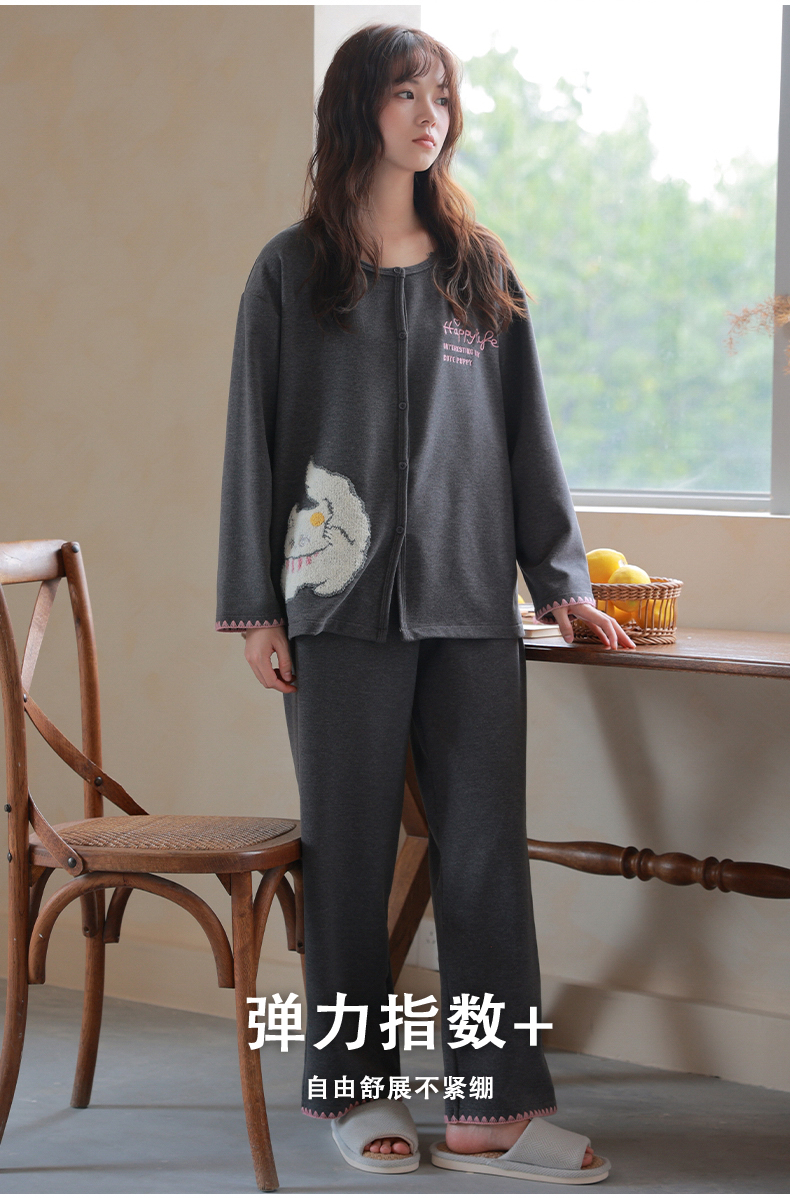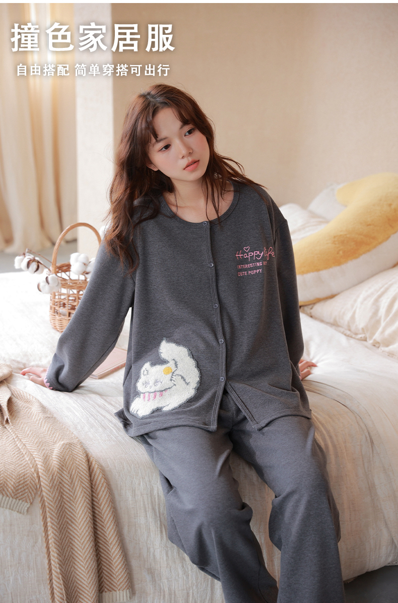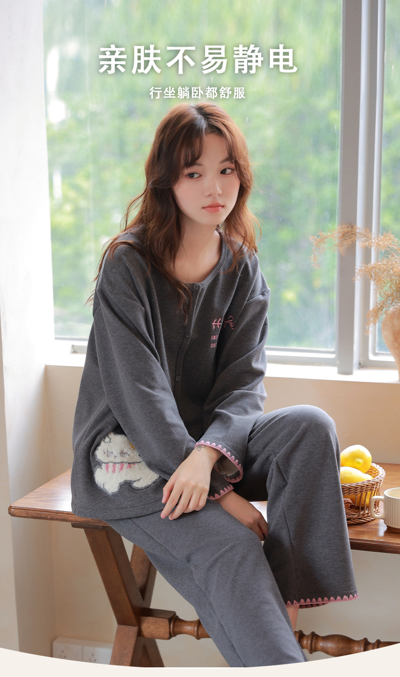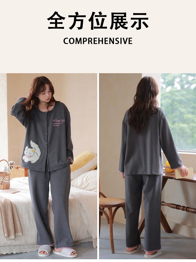 商品名称:洛兰沙家居馆 2025新款睡衣女长袖新款春秋双层羊绒德绒可外穿卡通开衫家居服套装韩版秋冬 42312