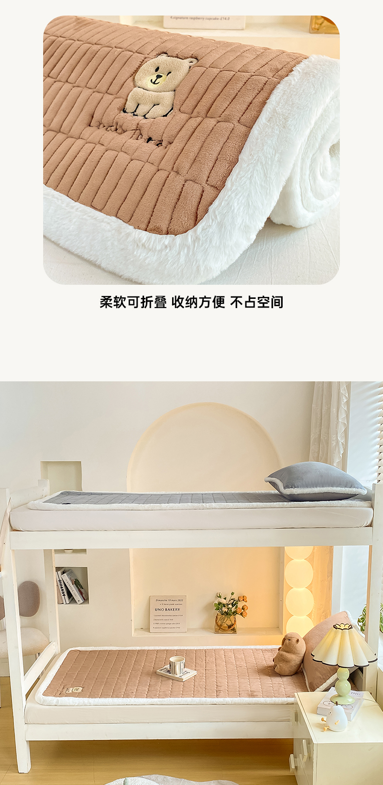 (总)梦初语 2025新款纯色牛奶绒贴布绣床垫褥冬季加绒加厚防滑学生宿舍 -直播爆款(面料17,猫咪-灰,猫咪-兰,维尼-咖,维尼-棕,小煤球-绿,小煤球-玉