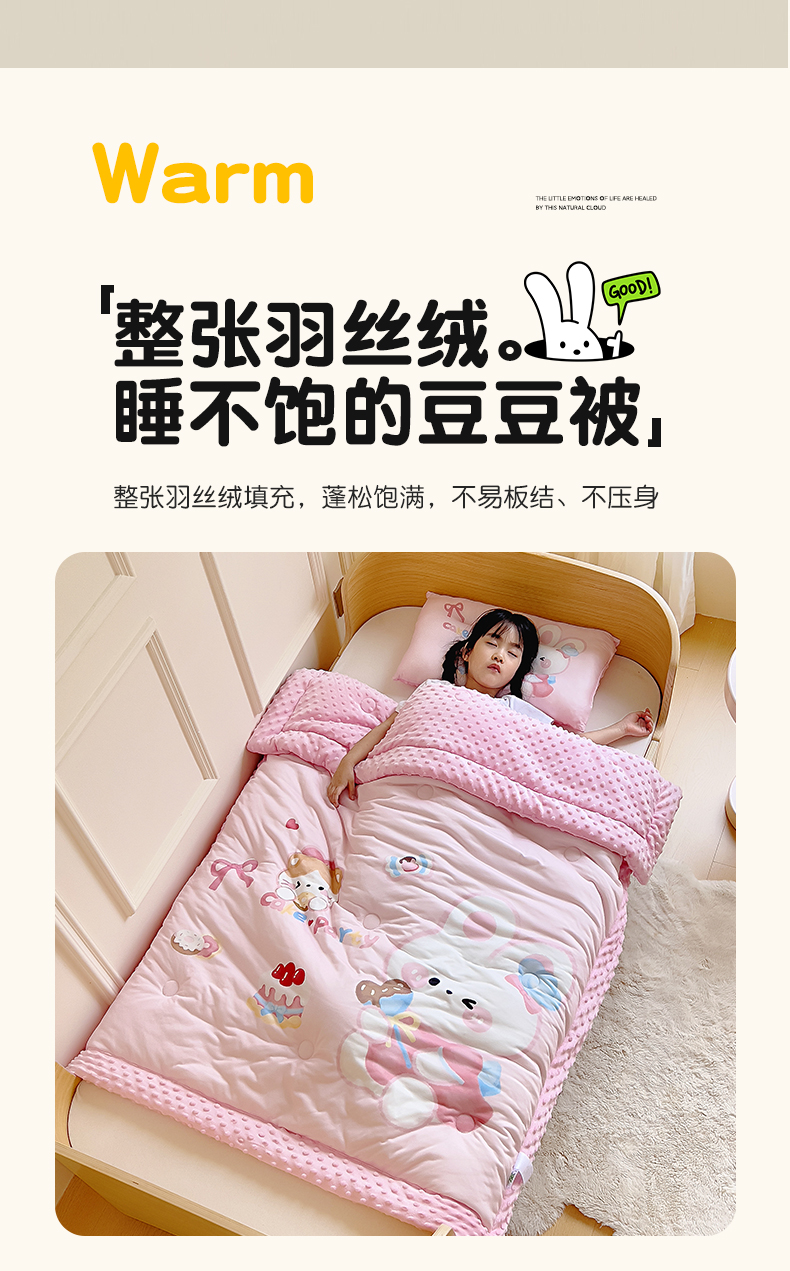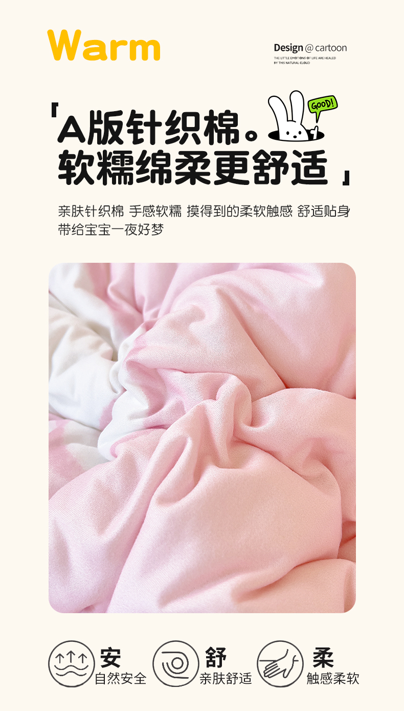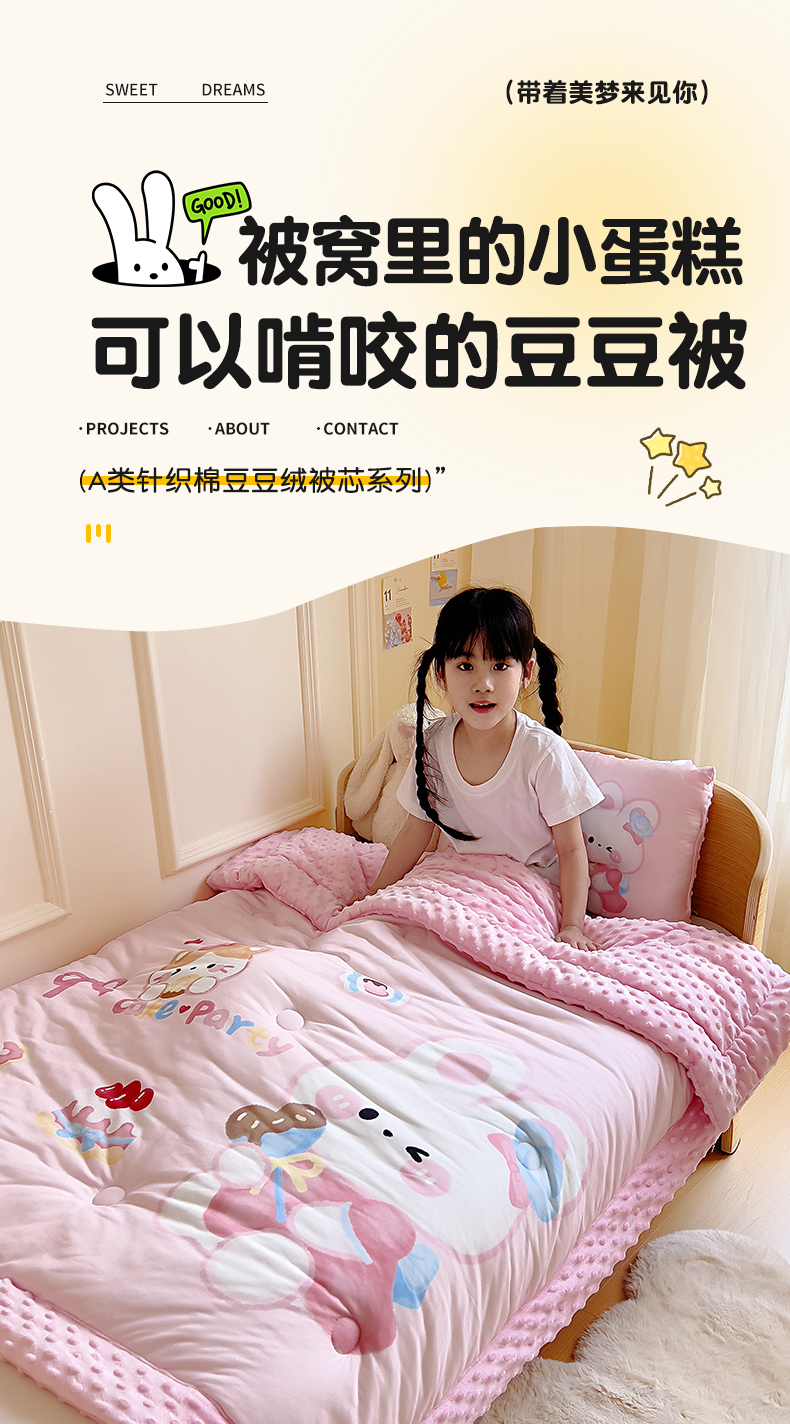 商品名称:鱼宝 2025新款大版针织棉豆豆被被子被芯 小兔森妮