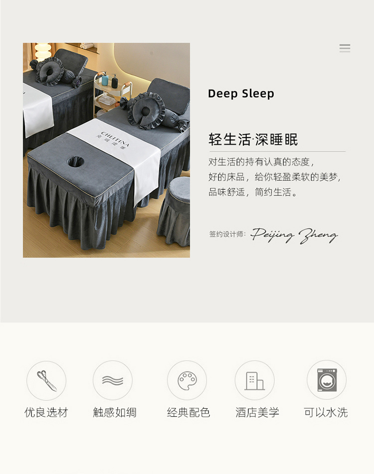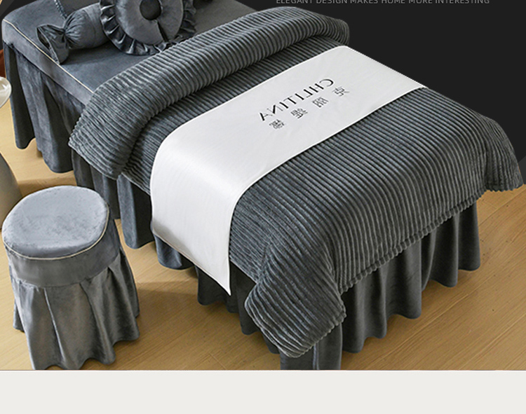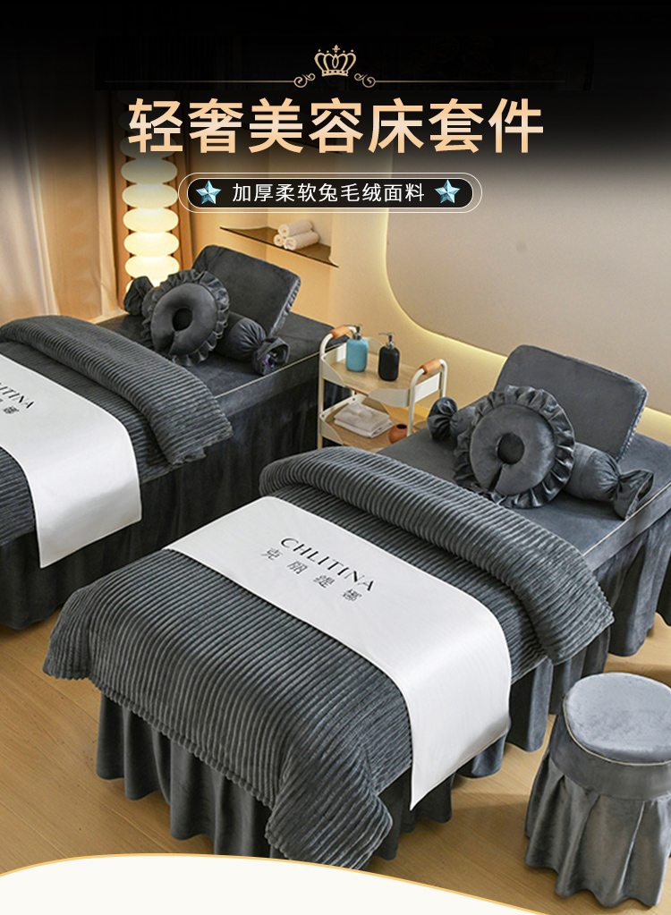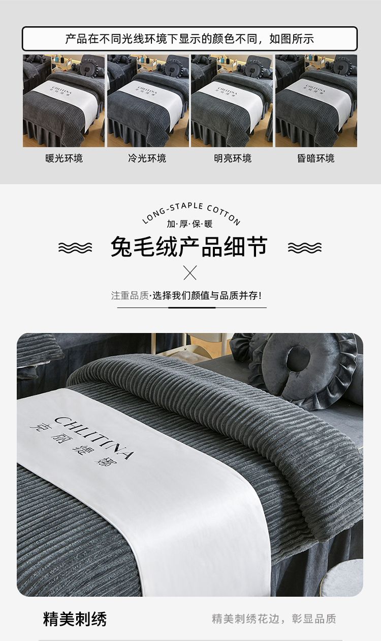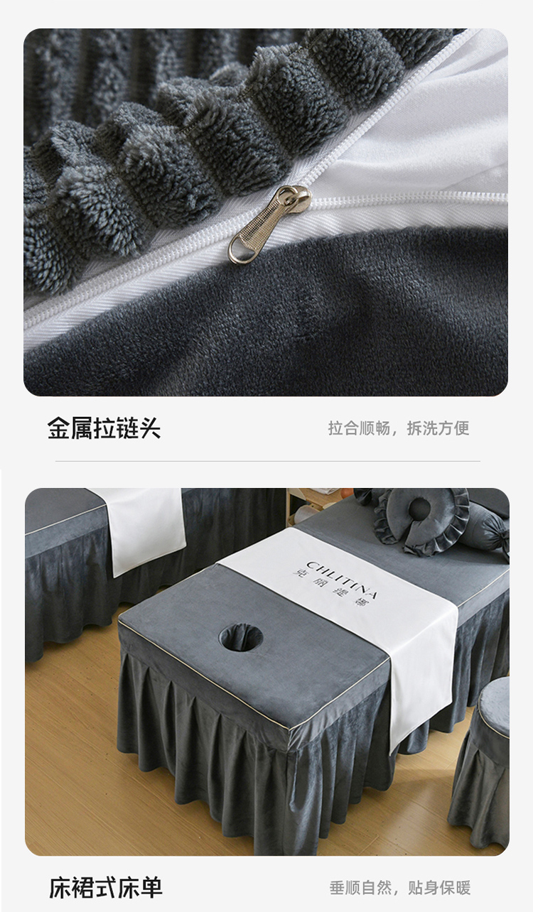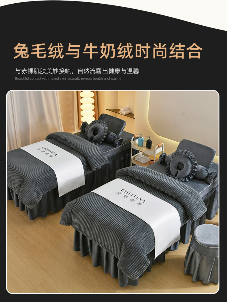 商品名称:诗薇娅 2025新款加厚兔毛绒美容床罩 美容床罩四件套 深灰色