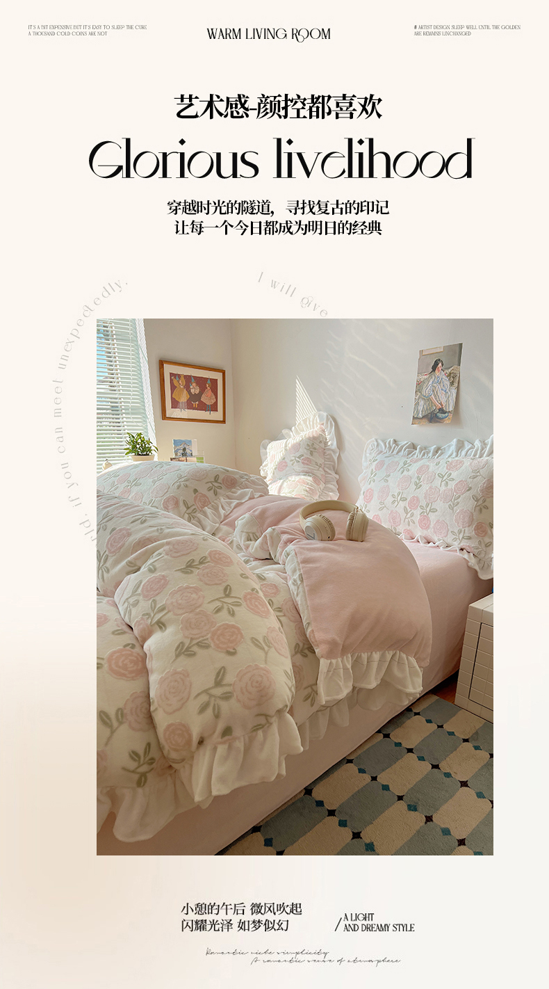 (总)六巷胡同 2025新款INS博主复古风山茶花A类仿羊绒四件套,仿羊绒-山茶琥珀,仿羊绒-山茶薄墨,仿羊绒-山茶朱樱