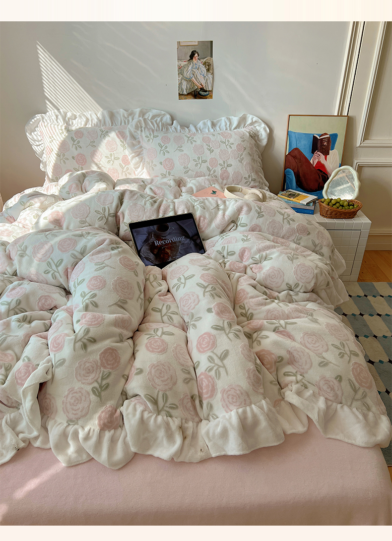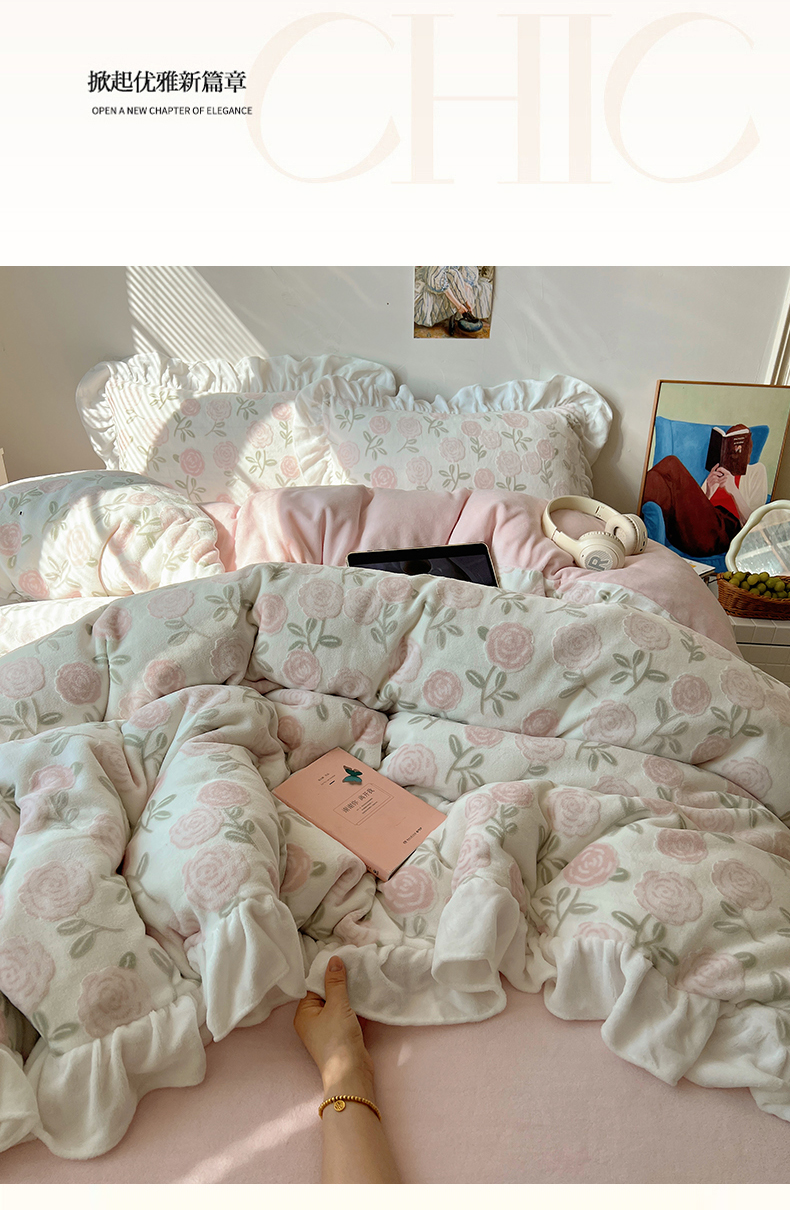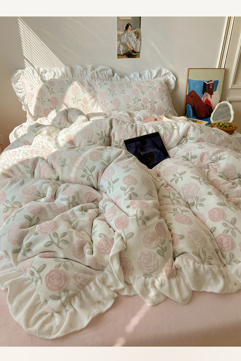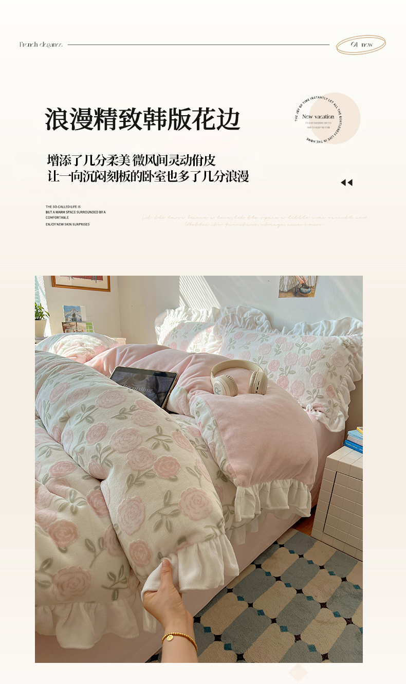 商品名称:(总)六巷胡同 2025新款韩系小清新博主风着色立体雕花A类牛奶绒四件套
