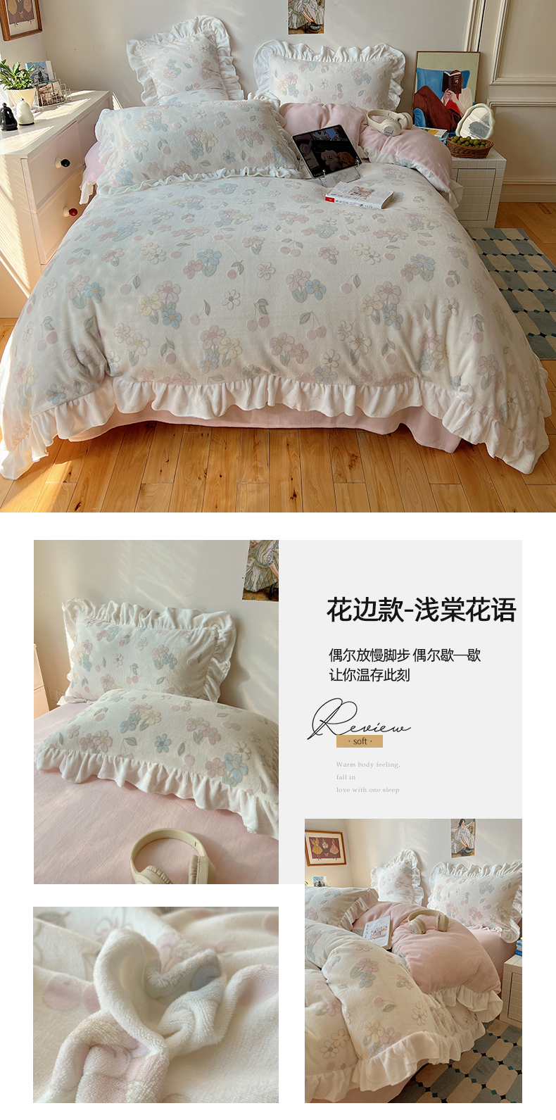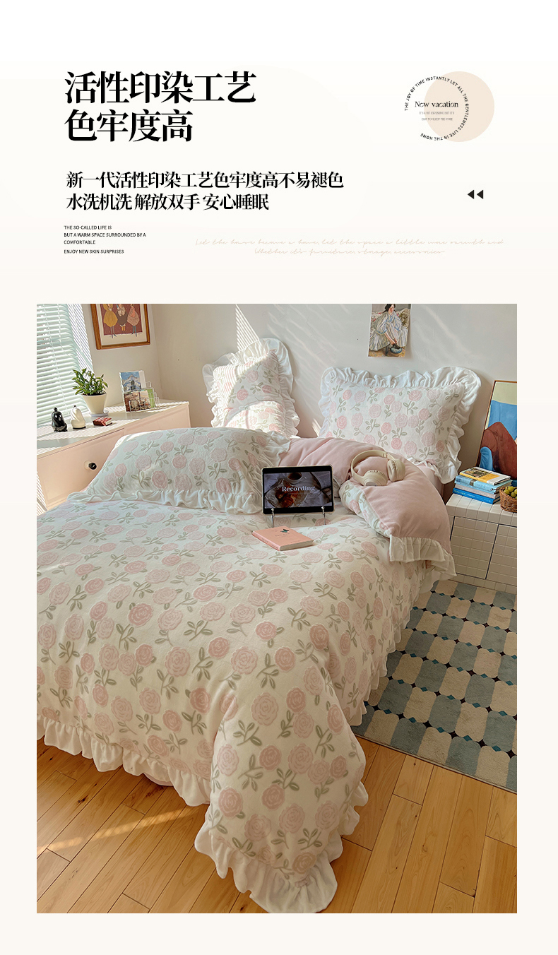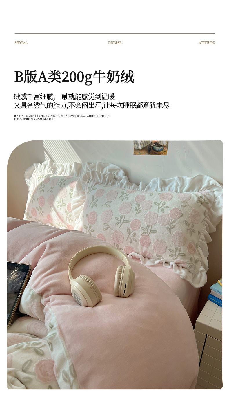 商品名称:(总)六巷胡同 2025新款韩系小清新博主风着色立体雕花A类牛奶绒四件套