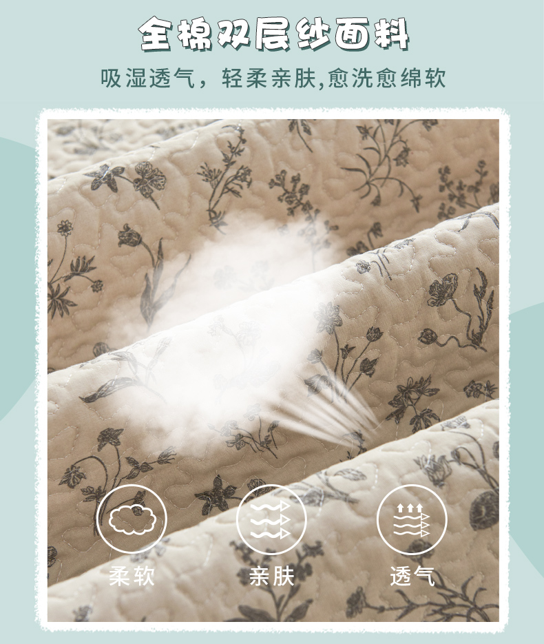 (总)拾小柒 2026年新款全棉双层纱床护垫纯棉防滑床盖床褥子软床垫,豆豆好朋友,咕噜派米,鲤安,萌趣森林粉,萌趣森林蓝