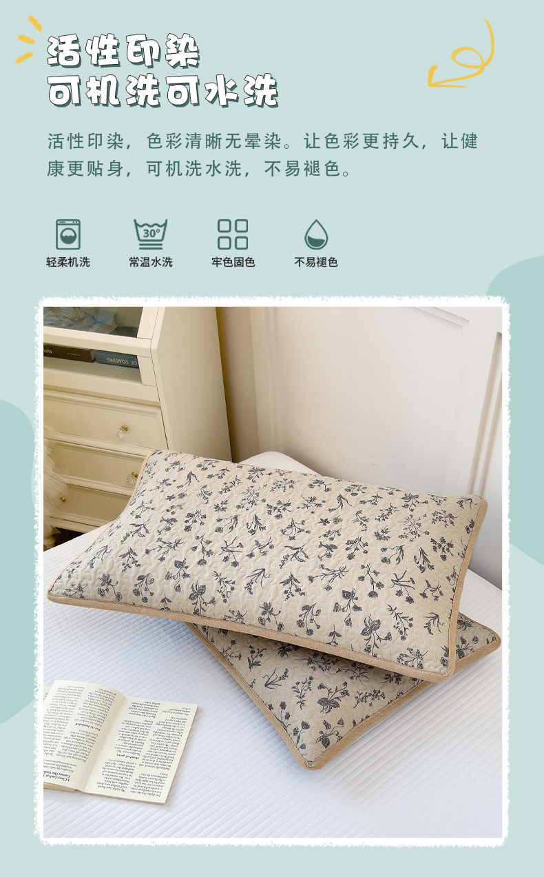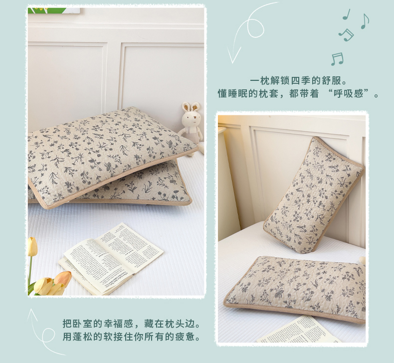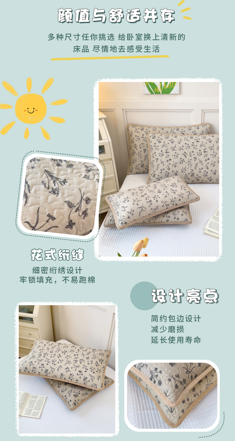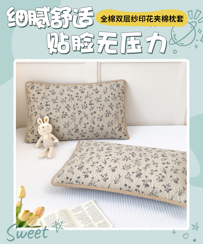 • 91家纺网 家纺一手货源 找家纺 拾小柒 2025年新款全棉双层纱枕套夹棉隔脏污防口水头油枕头套 山野小咖