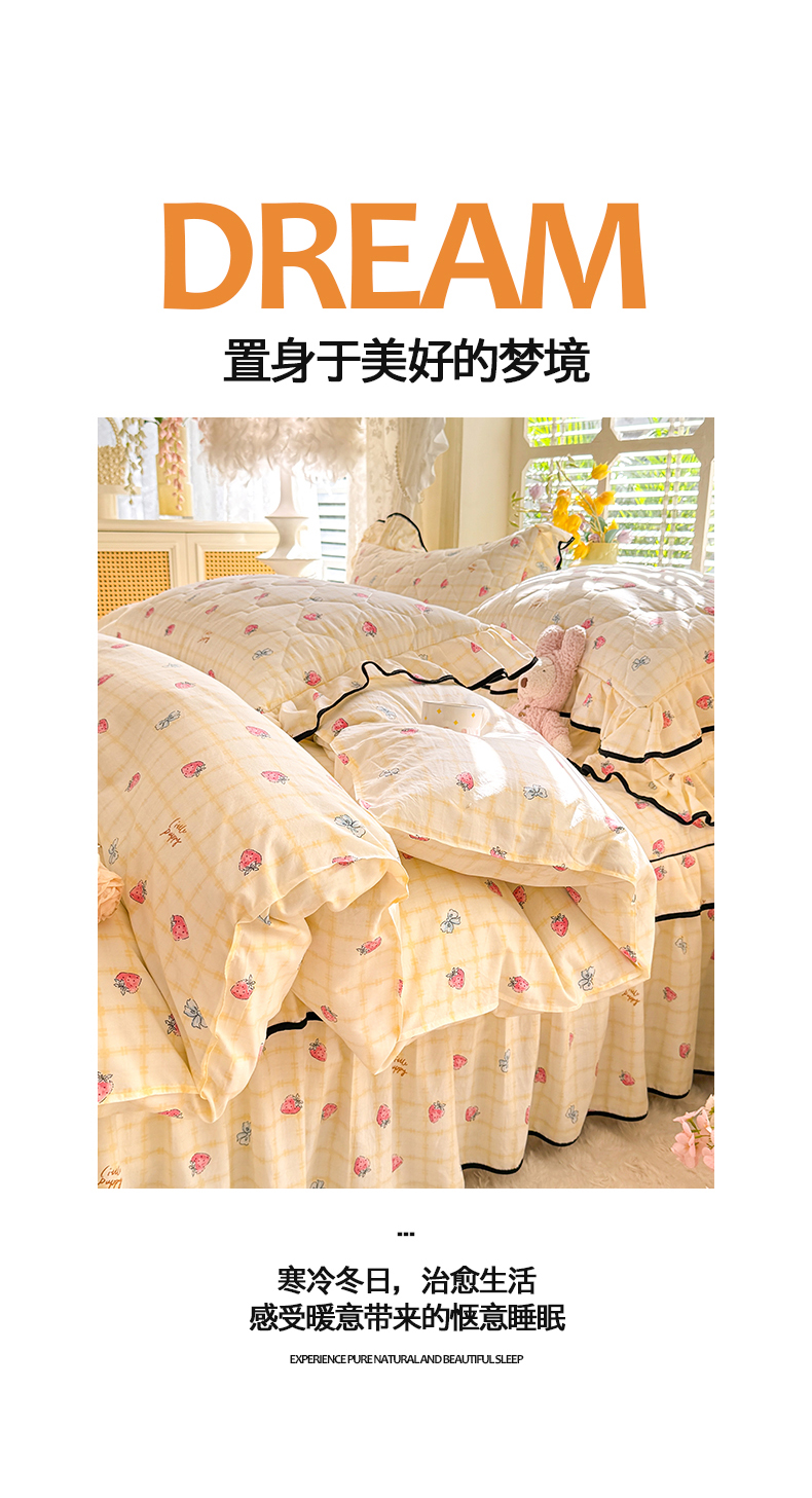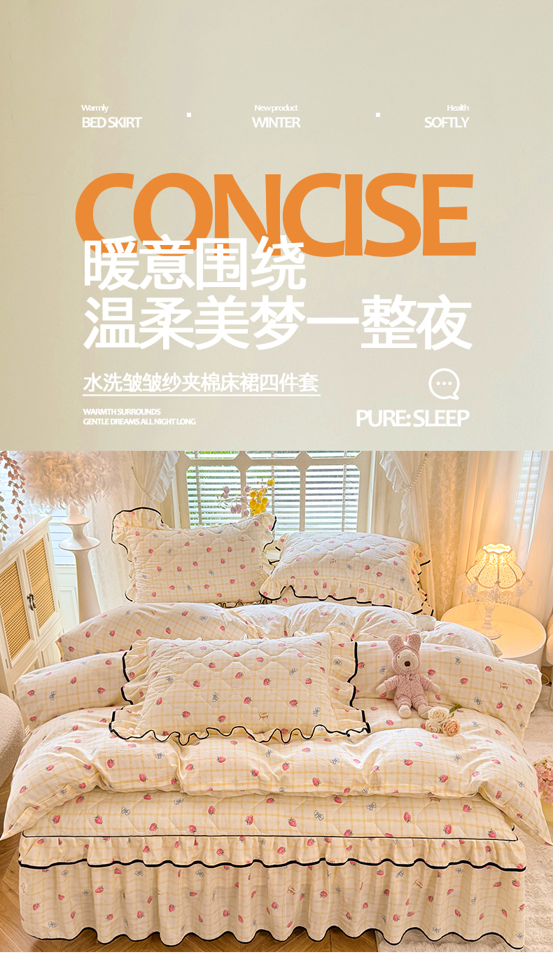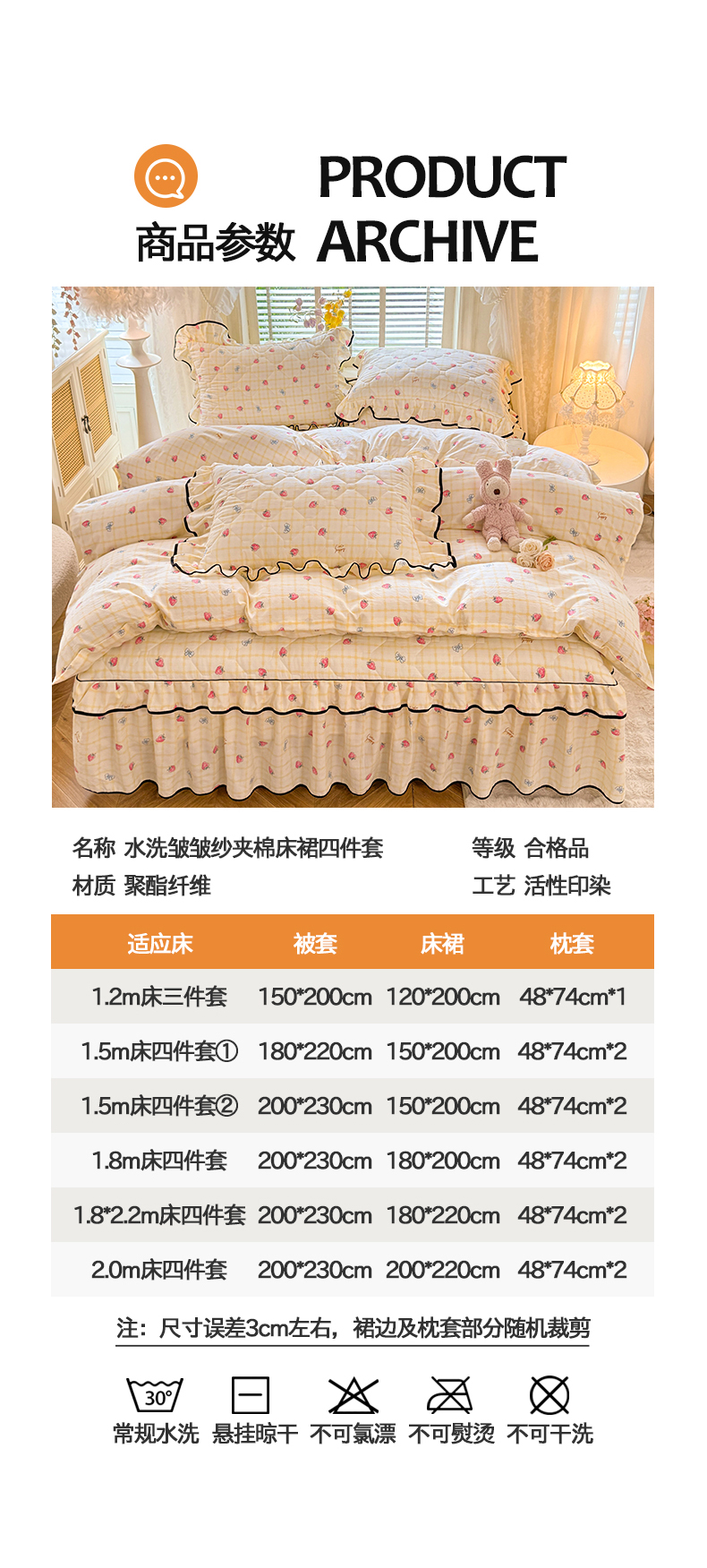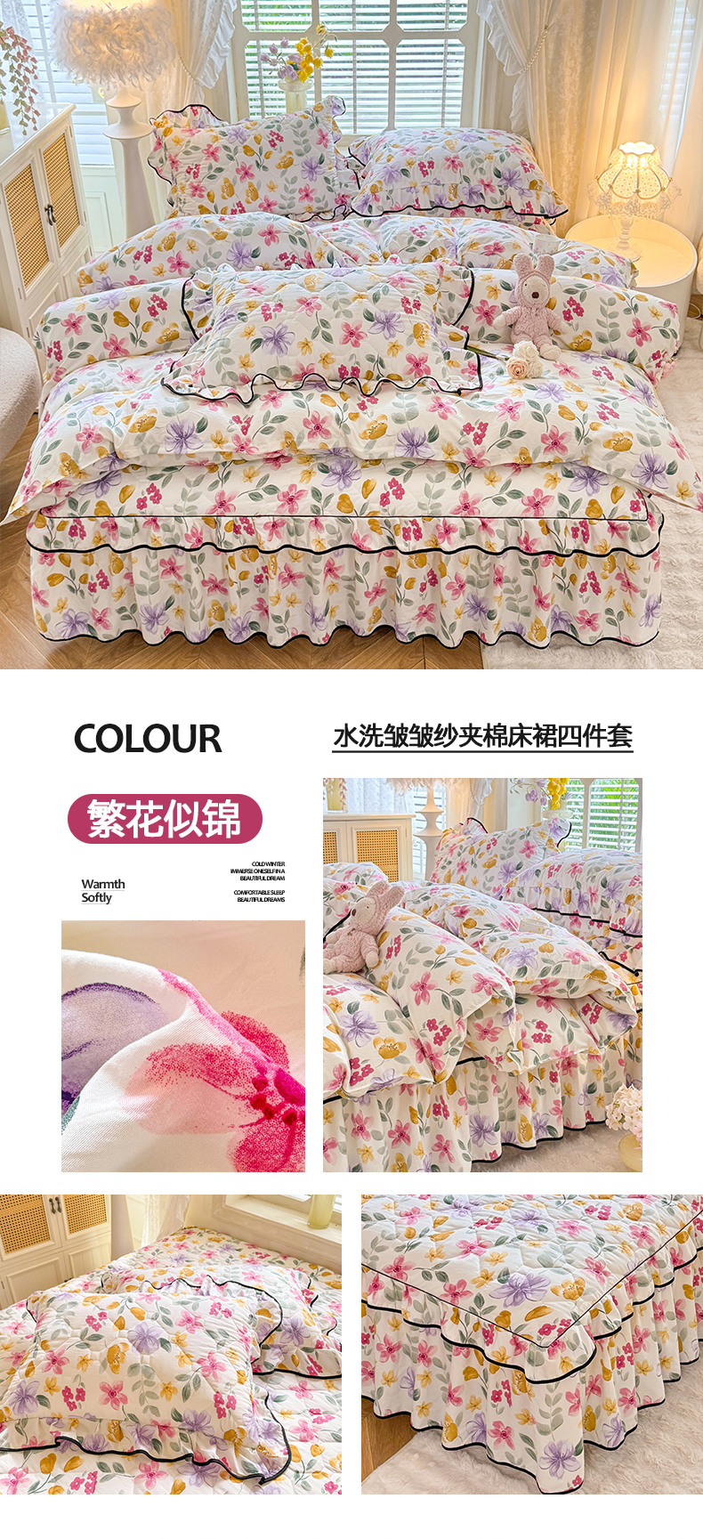 当前位置: 91家纺网 > 商品网购 > 床品套件 > 四件套 > 其它四件套 > 优家居 2025新品水洗棉夹棉床裙四件套韩版糯糯棉水洗皱皱纱床罩被套直播爆款 莓好时光