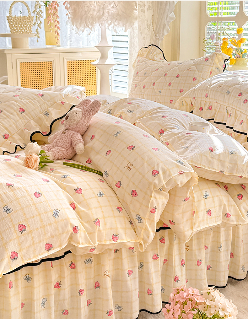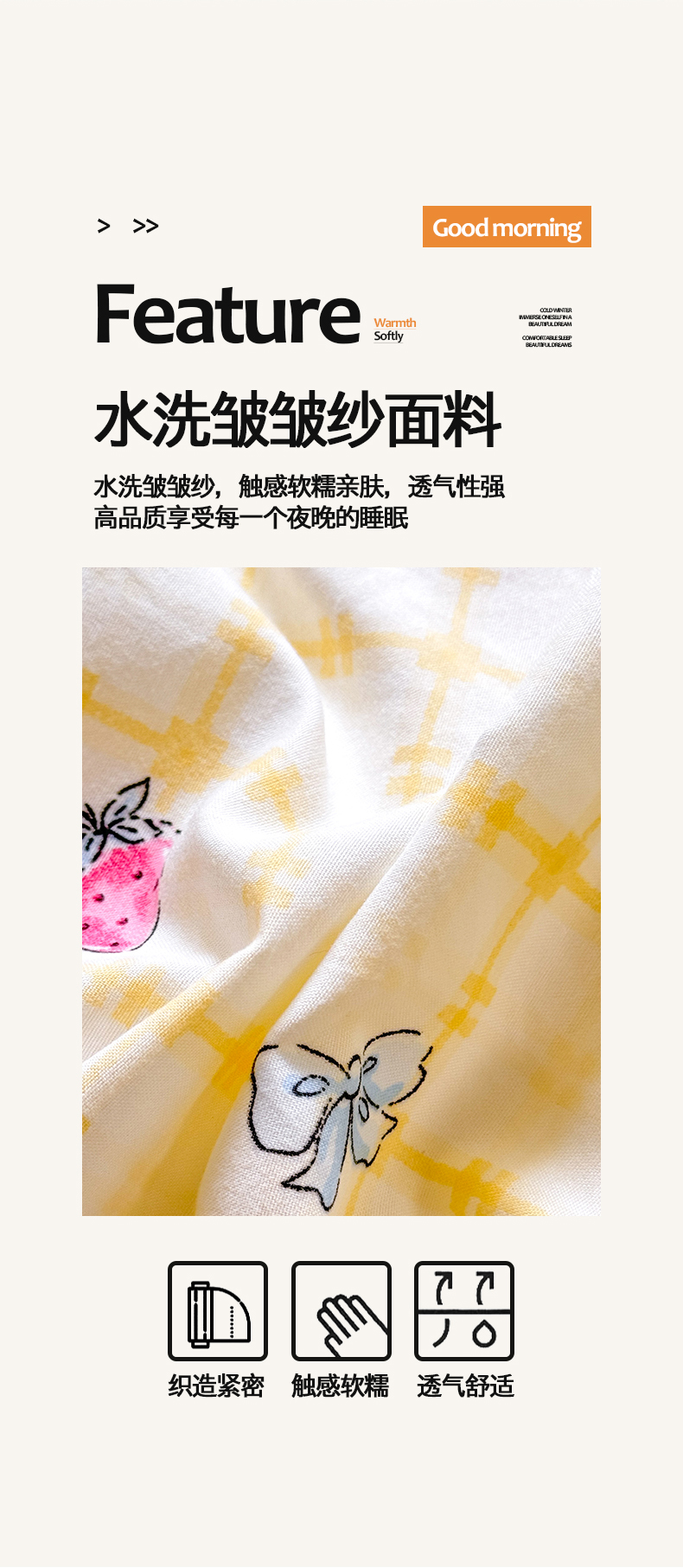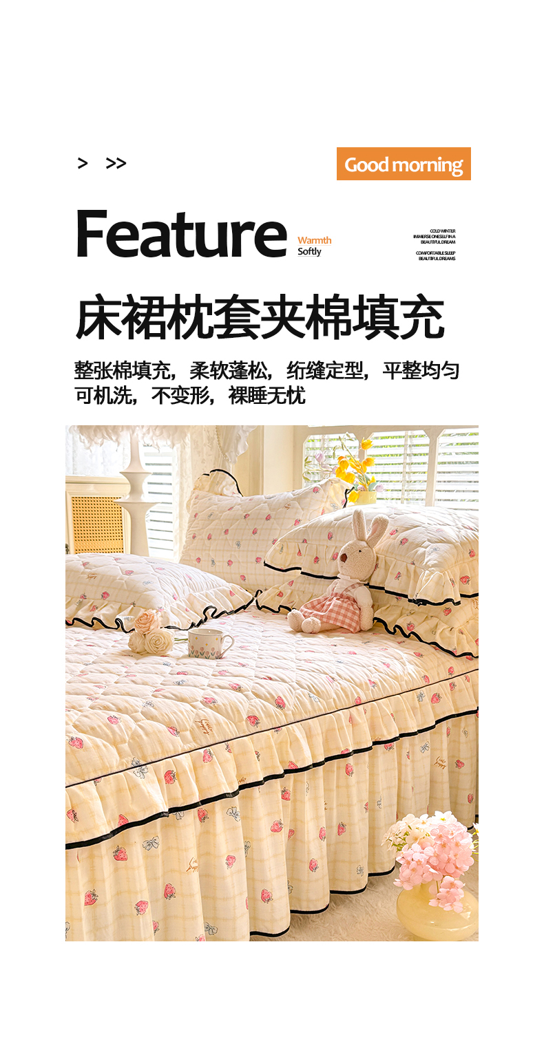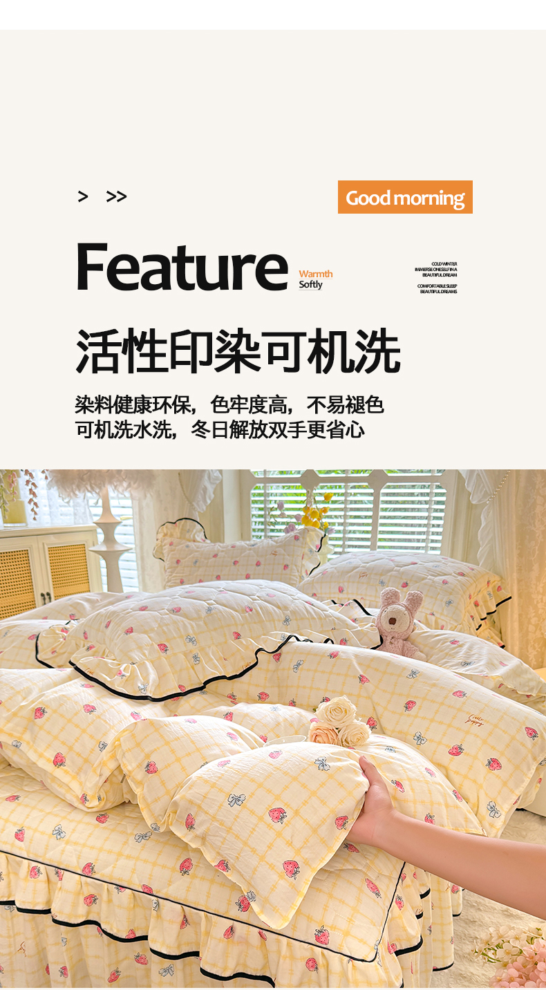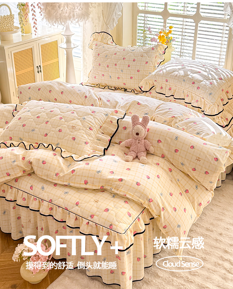 当前位置: 91家纺网 > 商品网购 > 床品套件 > 四件套 > 其它四件套 > 优家居 2025新品水洗棉夹棉床裙四件套韩版糯糯棉水洗皱皱纱床罩被套直播爆款 莓好时光