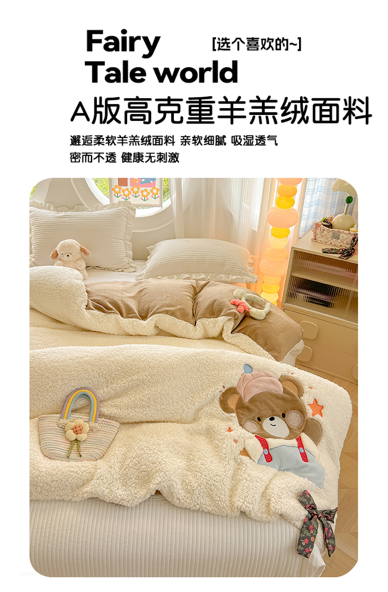 商品名称:(总)子钦家纺 2025新款羊羔绒牛奶绒卡通贴布绣多功能盖毯单被套(第二波)