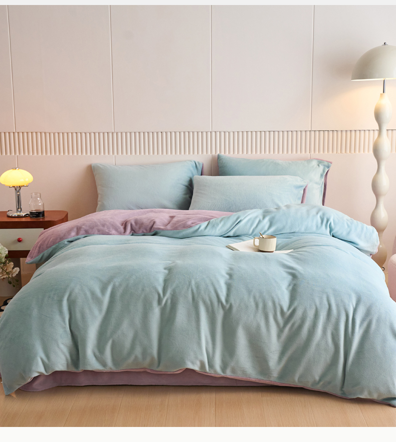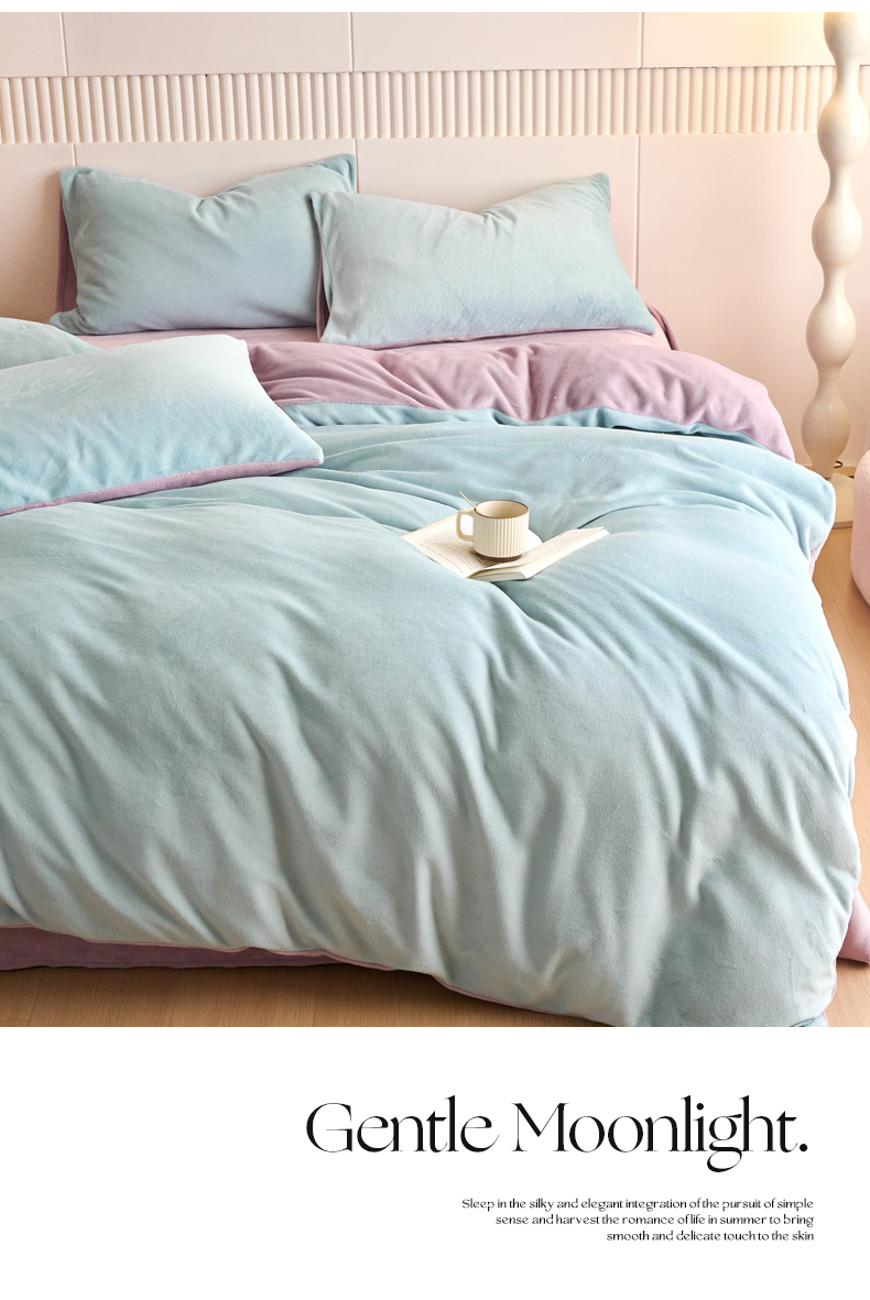 当前位置: 91家纺网 > 商品网购 > 床品套件 > 四件套 > 牛奶绒四件套 > 乐居家纺 2025新款200克重纯色单面绒牛奶绒四件套 浅星蓝+罗兰紫