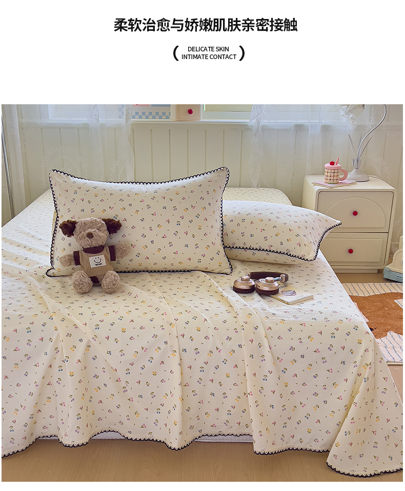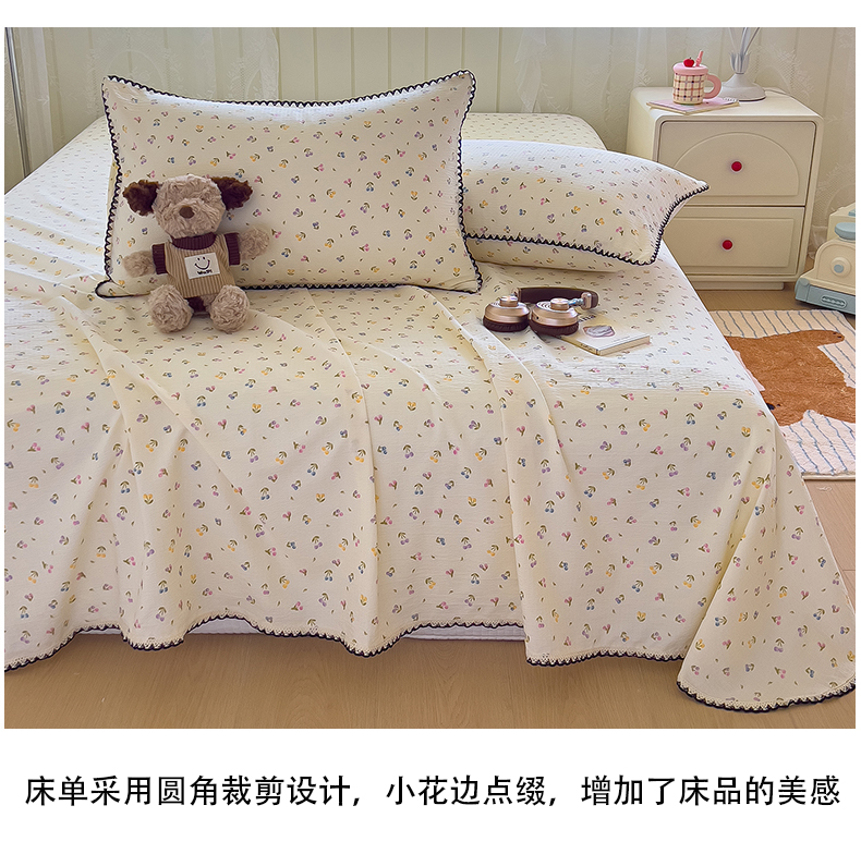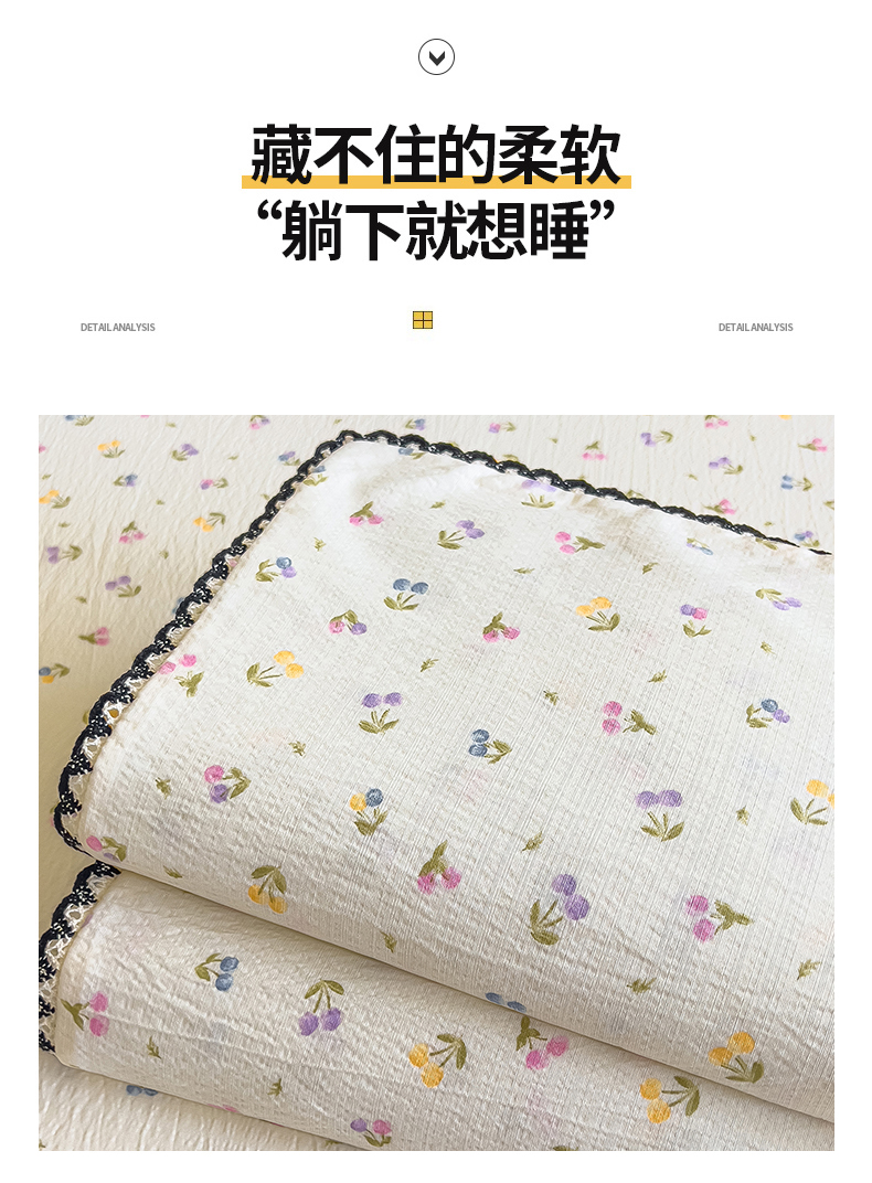 • 91家纺网 家纺一手货源 找家纺 三盛源 2025新款韩版碎花皱皱双层纱镂空花边水洗棉单床单床单单件 樱桃波波