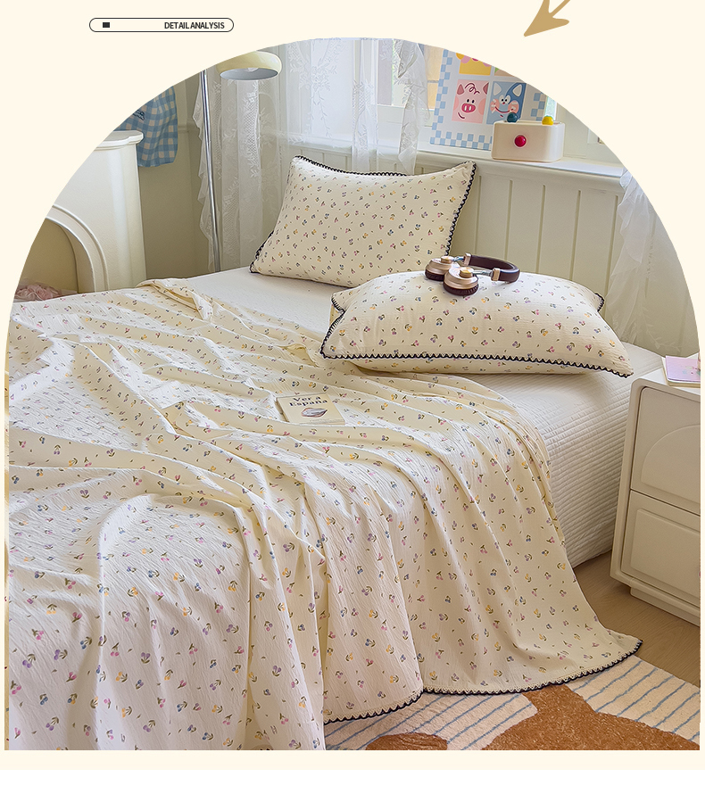 (总)三盛源 2025新款韩系小花卉镂空花边超柔皱皱双层纱水洗棉单被套被套单件,绿野,萌趣小窝,奶油星点,泡芙小狗,桃粉,絮语,紫萝漫想,紫米樱桃