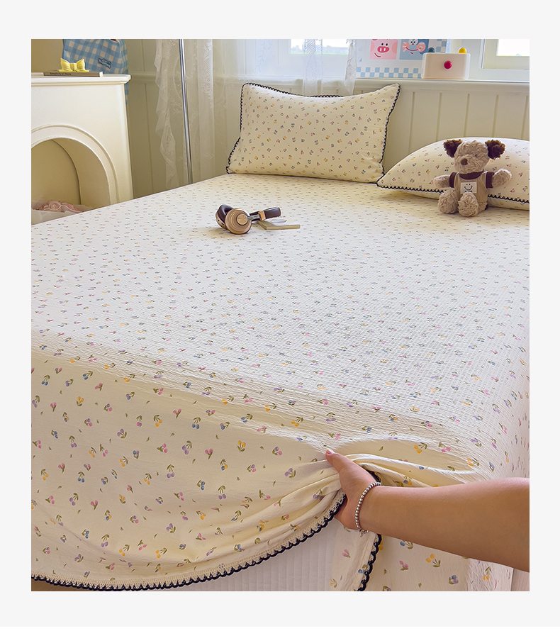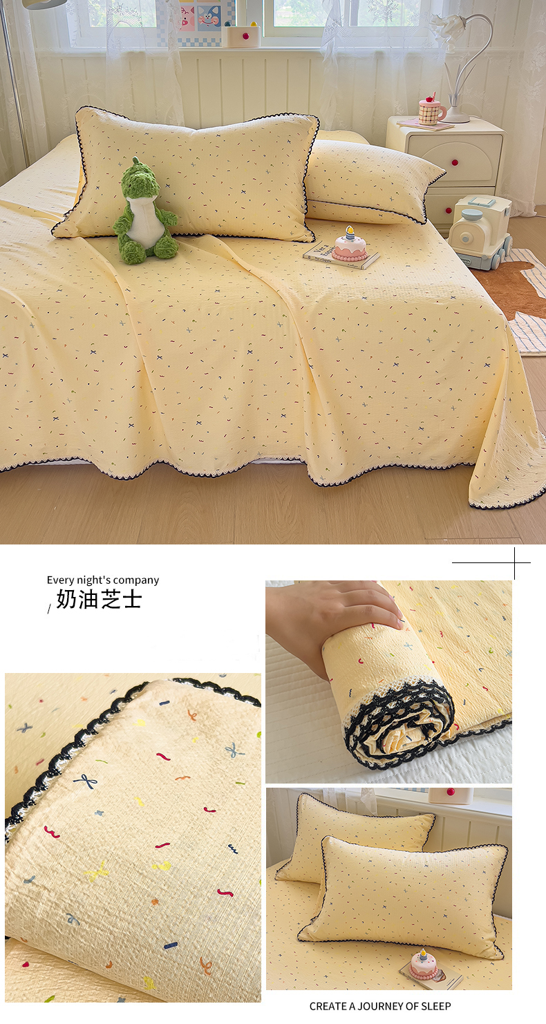(总)三盛源 2025新款韩版碎花皱皱双层纱镂空花边水洗棉单床单床单单件,波点兔-蓝,狗狗乐园,含烟蔻-紫,莱茵-绿,梦境,奶油芝士,桃之妖妖,樱桃波波