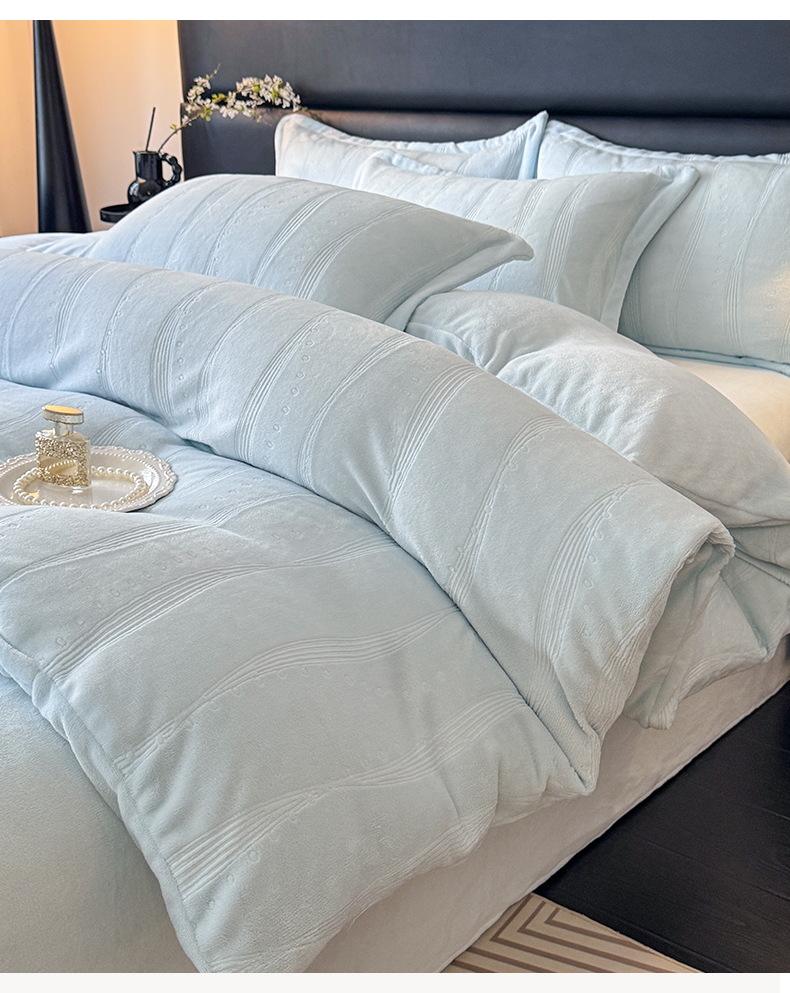 逸尚阁 2025新款立体雕花牛奶绒四件套--史密斯 史密斯-海洋蓝