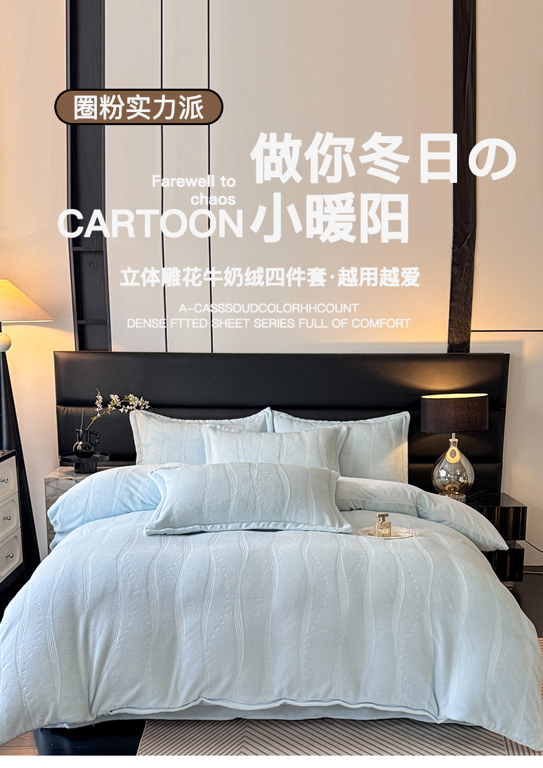 (总)逸尚阁 2025新款立体雕花牛奶绒四件套--史密斯,史密斯-奶白,史密斯-海洋蓝,史密斯-蜜瓜黄,史密斯-浅粉玉