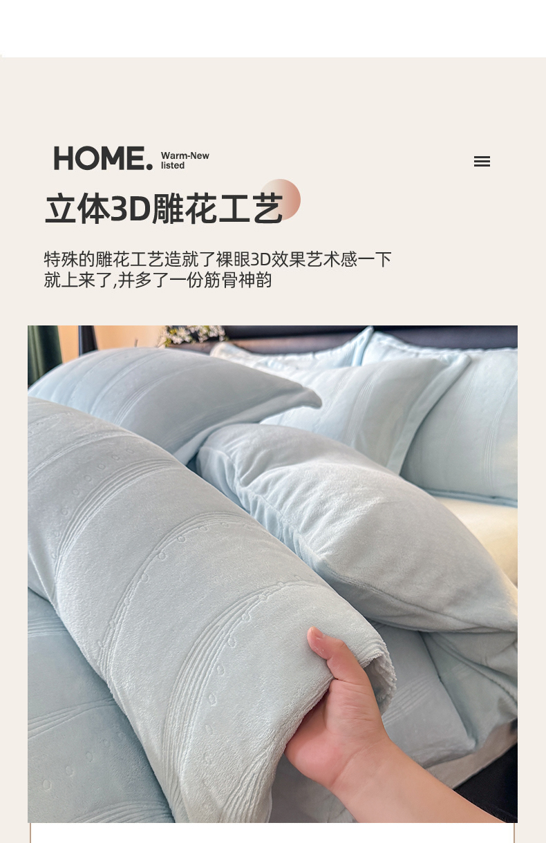商品名称:逸尚阁 2025新款立体雕花牛奶绒四件套--史密斯 史密斯-海洋蓝