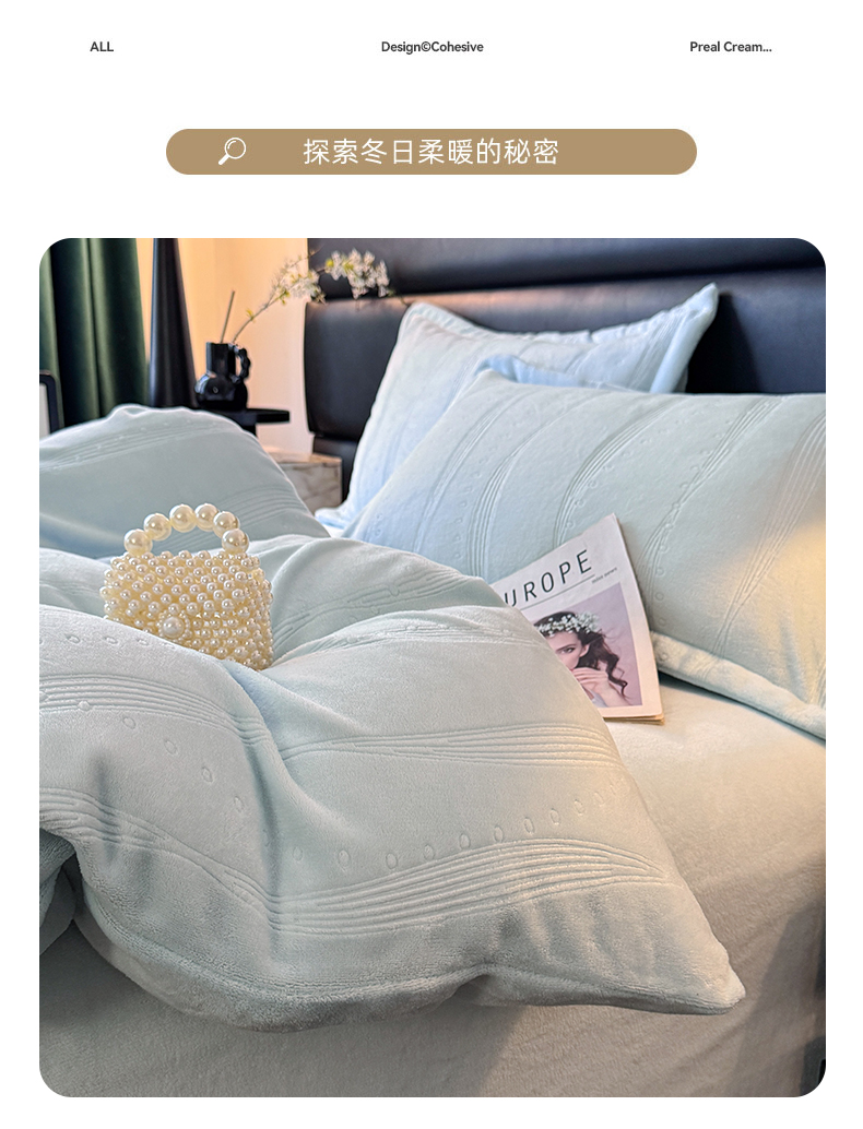 (总)逸尚阁 2025新款高克重雕花牛奶绒四件套-雅诺,雅诺·流光白,雅诺·奶蓝,雅诺·清水绿,雅诺·闪闪黄,雅诺·香气粉