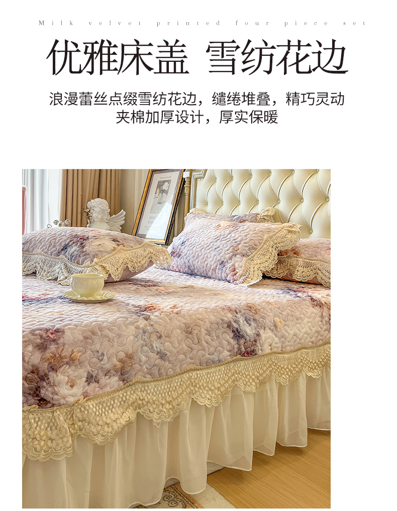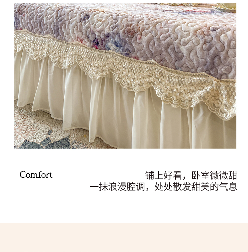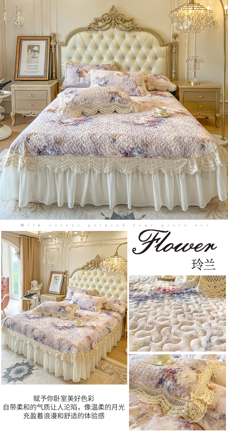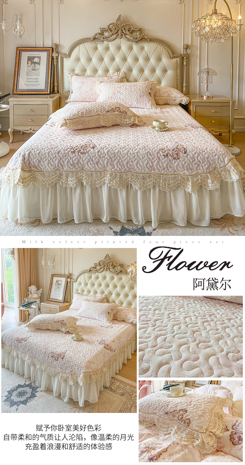 (总)网红馆(ck家纺) 2025新款亲肤舒适牛奶绒蕾丝边床裙四件套-秘密花园,秘密花园-粉色,秘密花园-卡其,秘密花园-米色,秘密花园-紫色