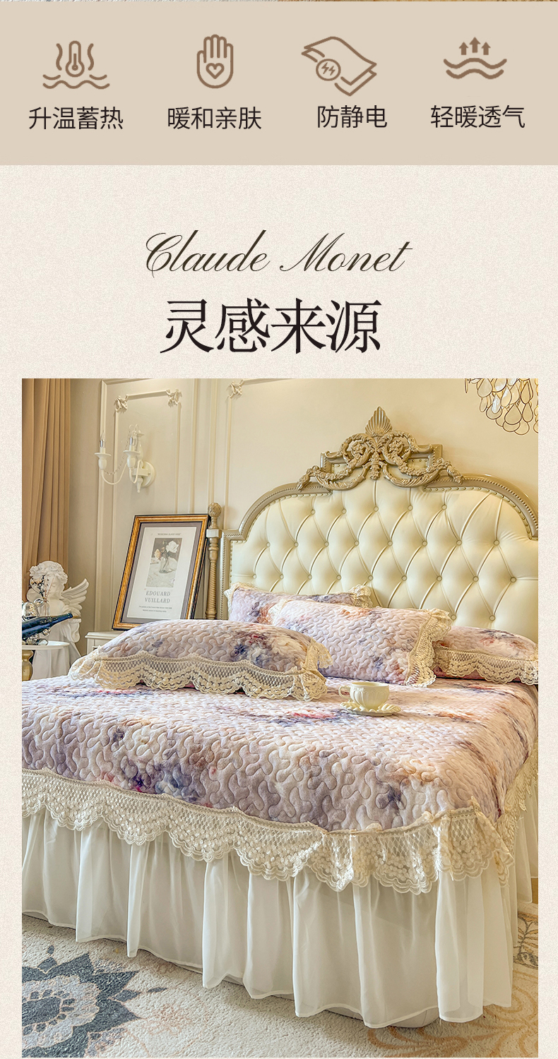 商品名称:网红馆(ck家纺) 2025新款牛奶绒印花床盖三件套 玲兰