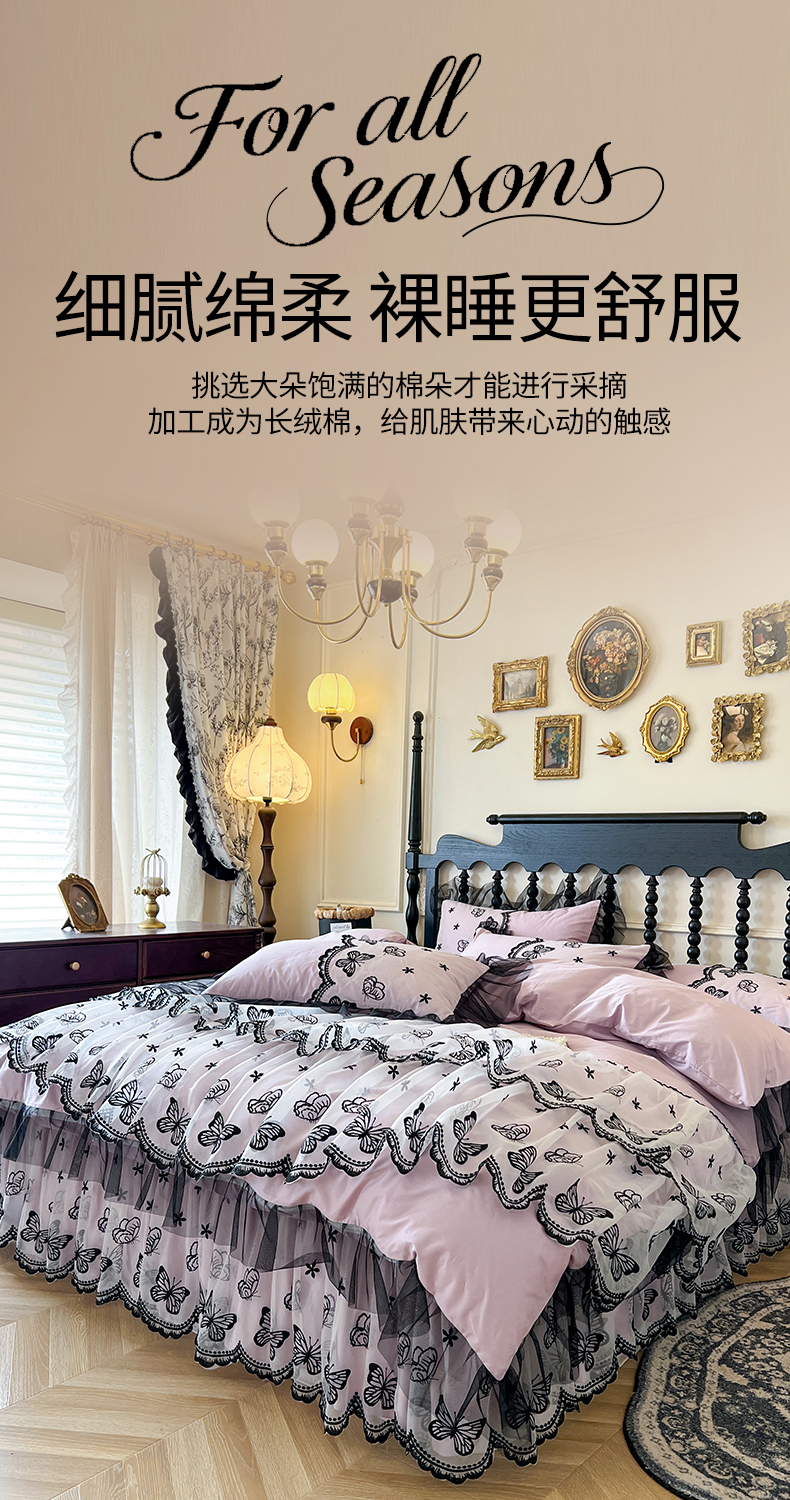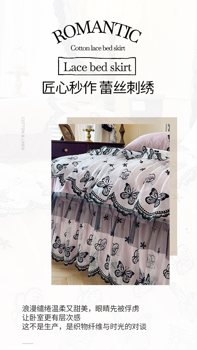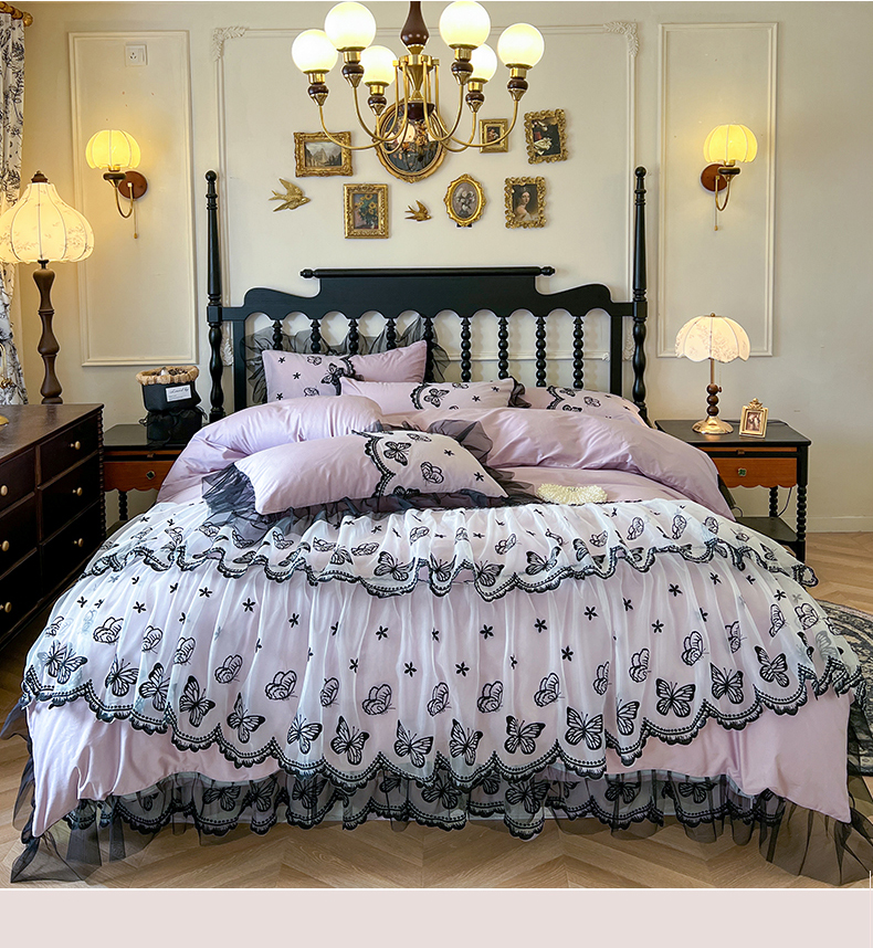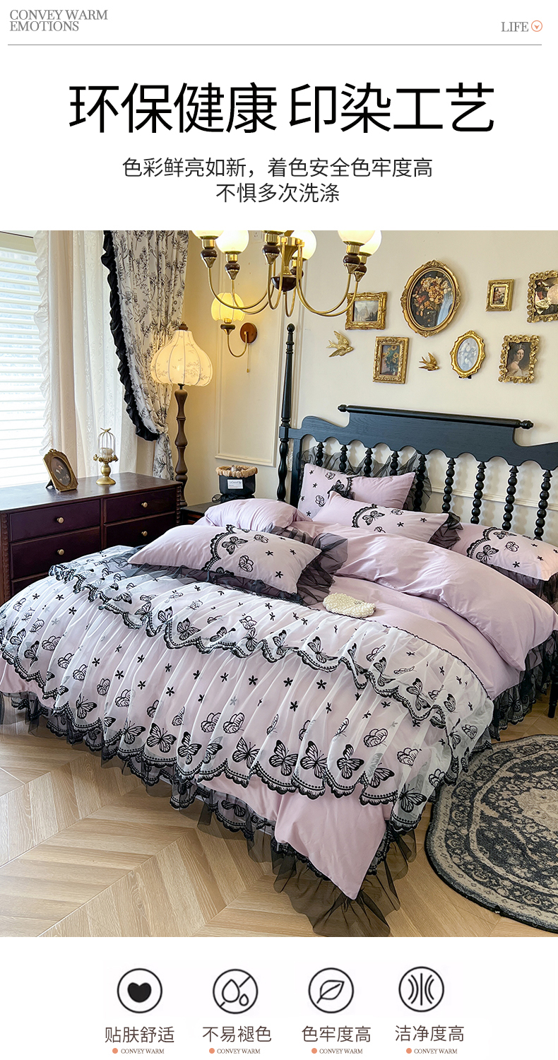 当前位置: 91家纺网 > 商品网购 > 床品套件 > 四件套 > 全棉普通四件套 > 网红馆(ck家纺) 2025新款全棉纯棉蕾丝边床裙款四件套-梦蝶轻舞 梦蝶轻舞-紫