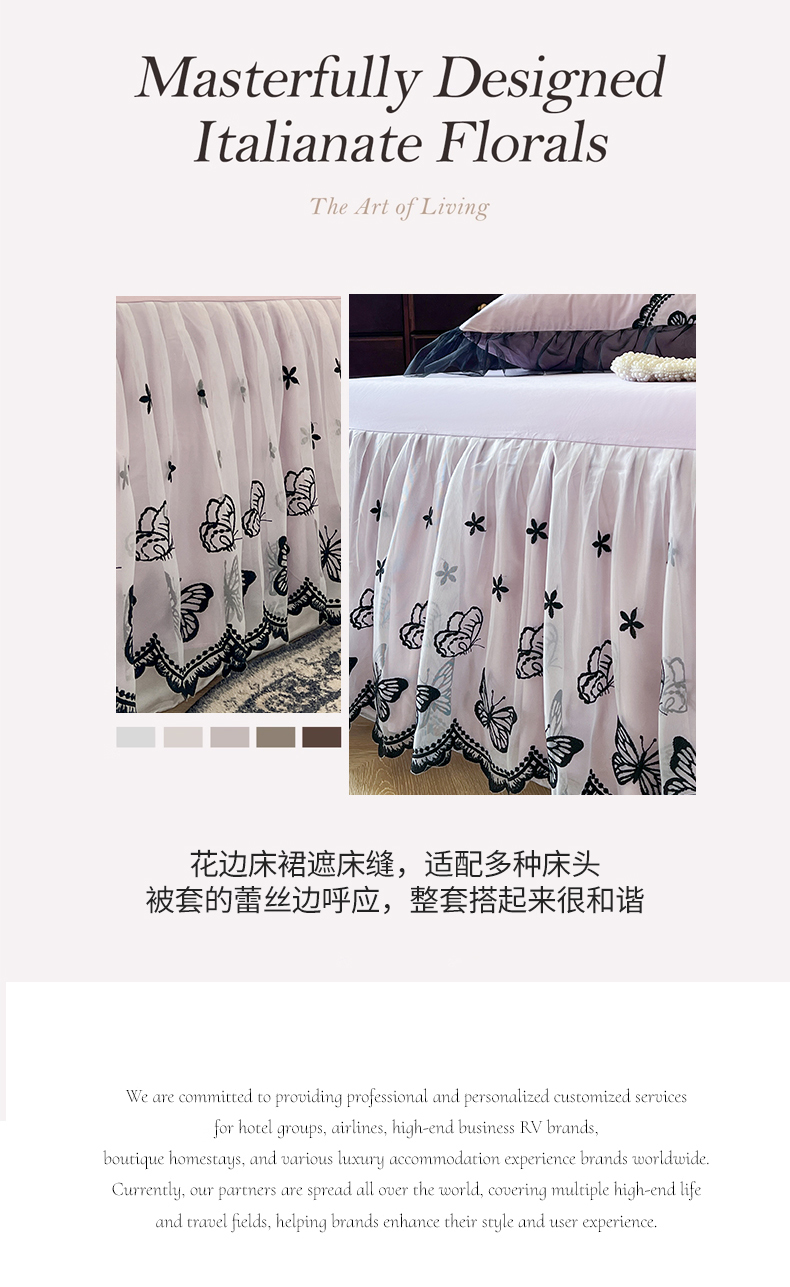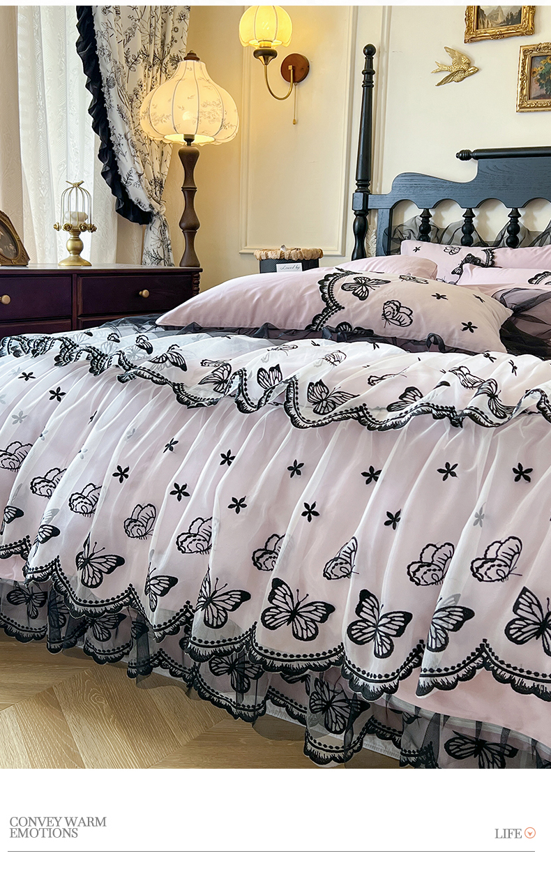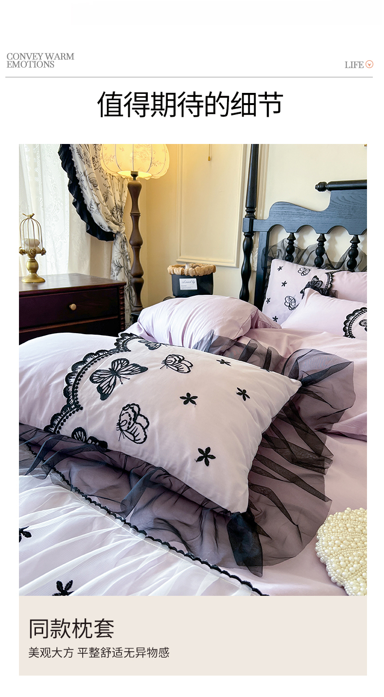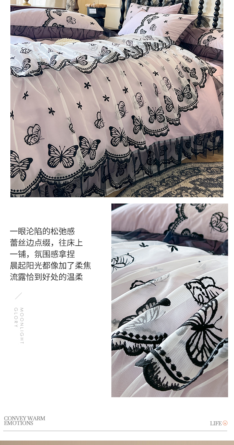 当前位置: 91家纺网 > 商品网购 > 床品套件 > 四件套 > 全棉普通四件套 > 网红馆(ck家纺) 2025新款全棉纯棉蕾丝边床裙款四件套-梦蝶轻舞 梦蝶轻舞-紫