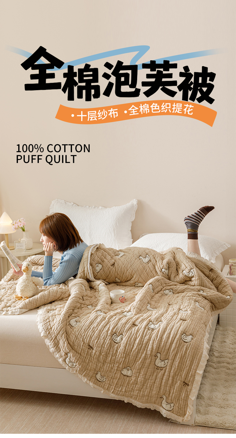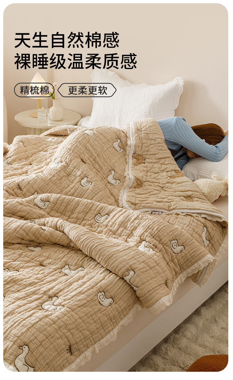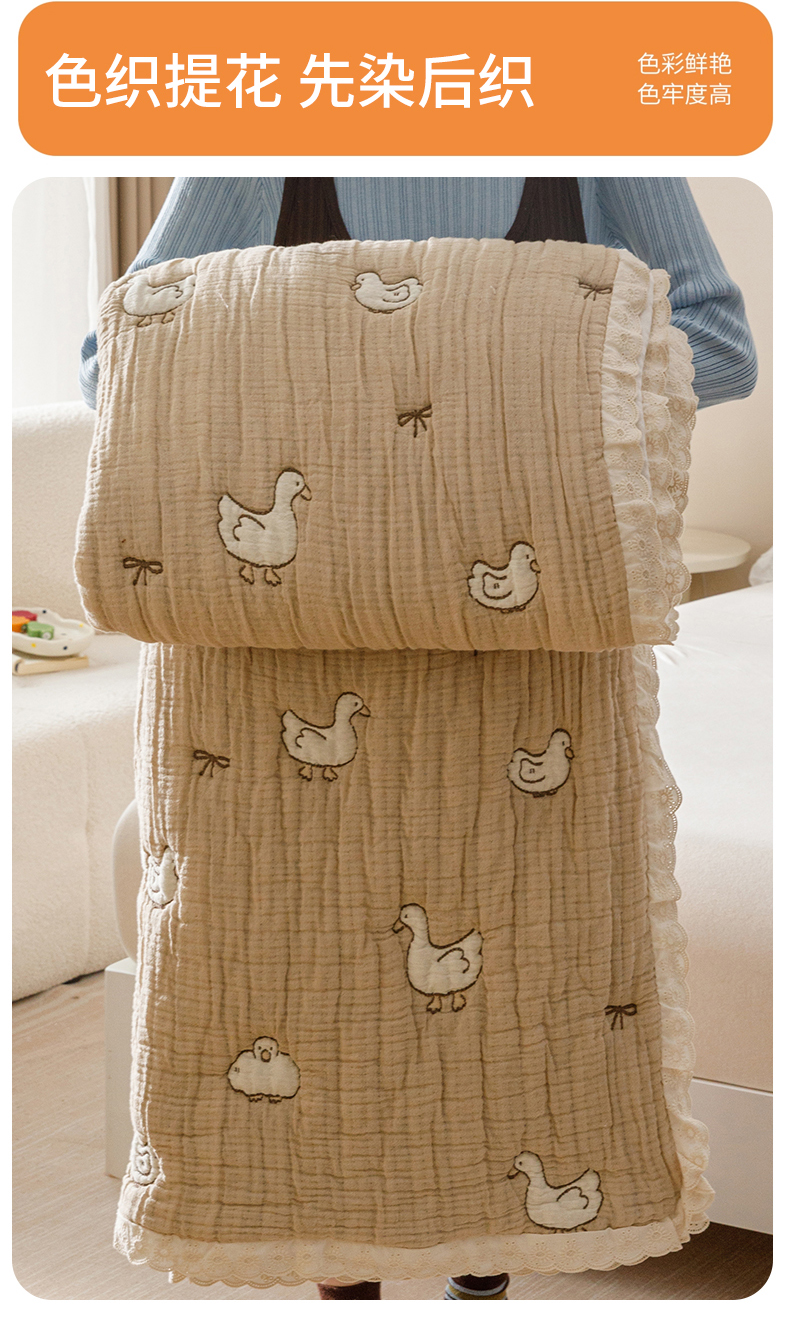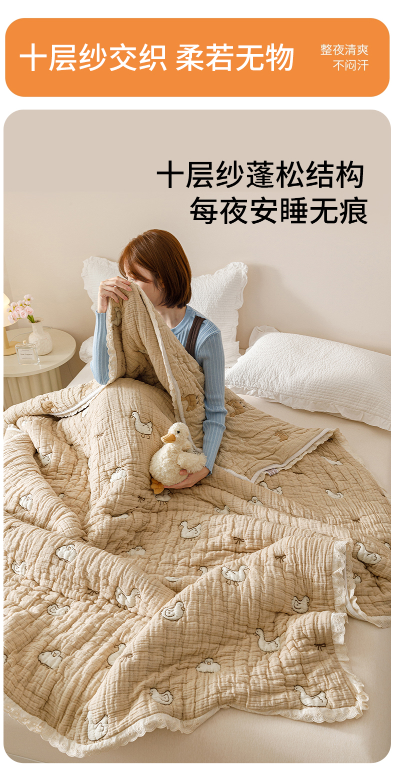商品名称:麻依 2025新款卡通安心棉泡芙被十层全棉纱布被子被芯 可爱鸭鸭