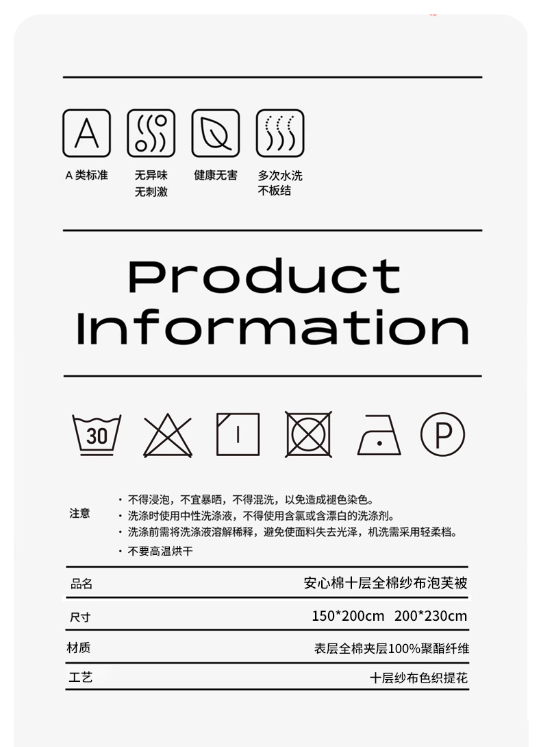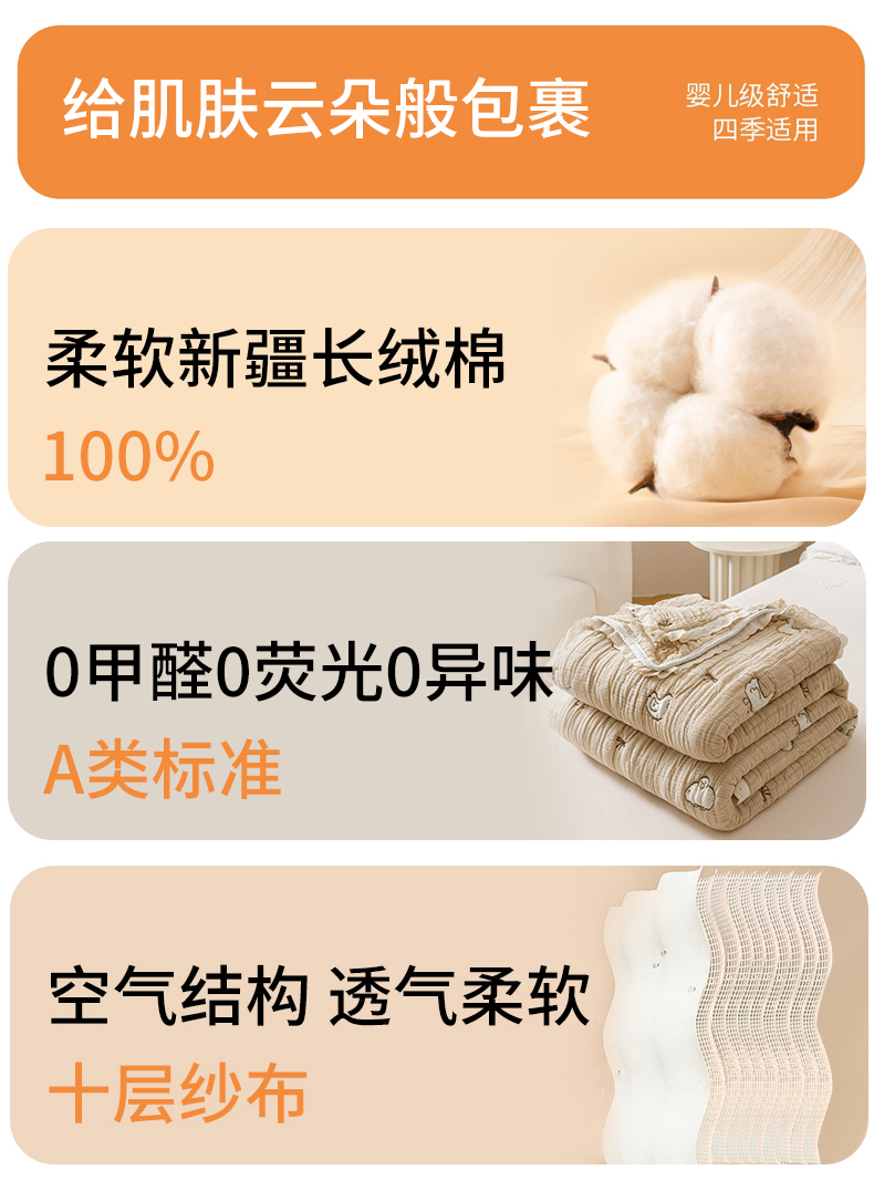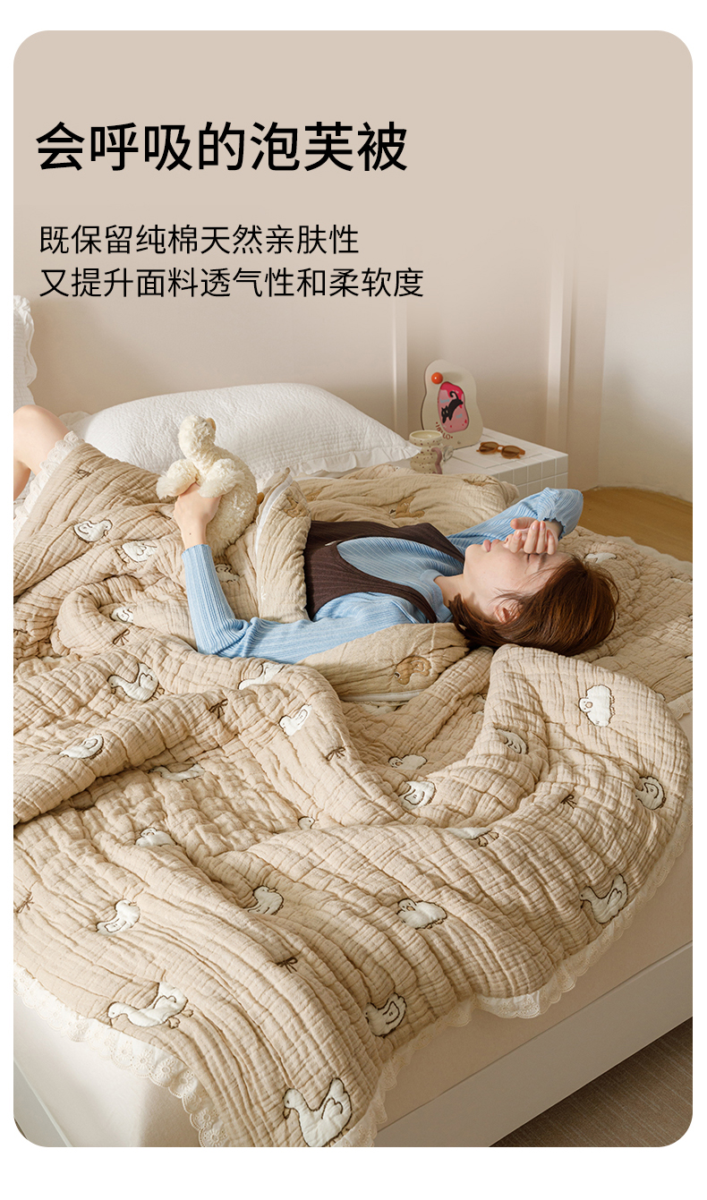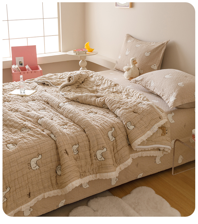 商品名称:麻依 2025新款卡通安心棉泡芙被十层全棉纱布被子被芯 可爱鸭鸭