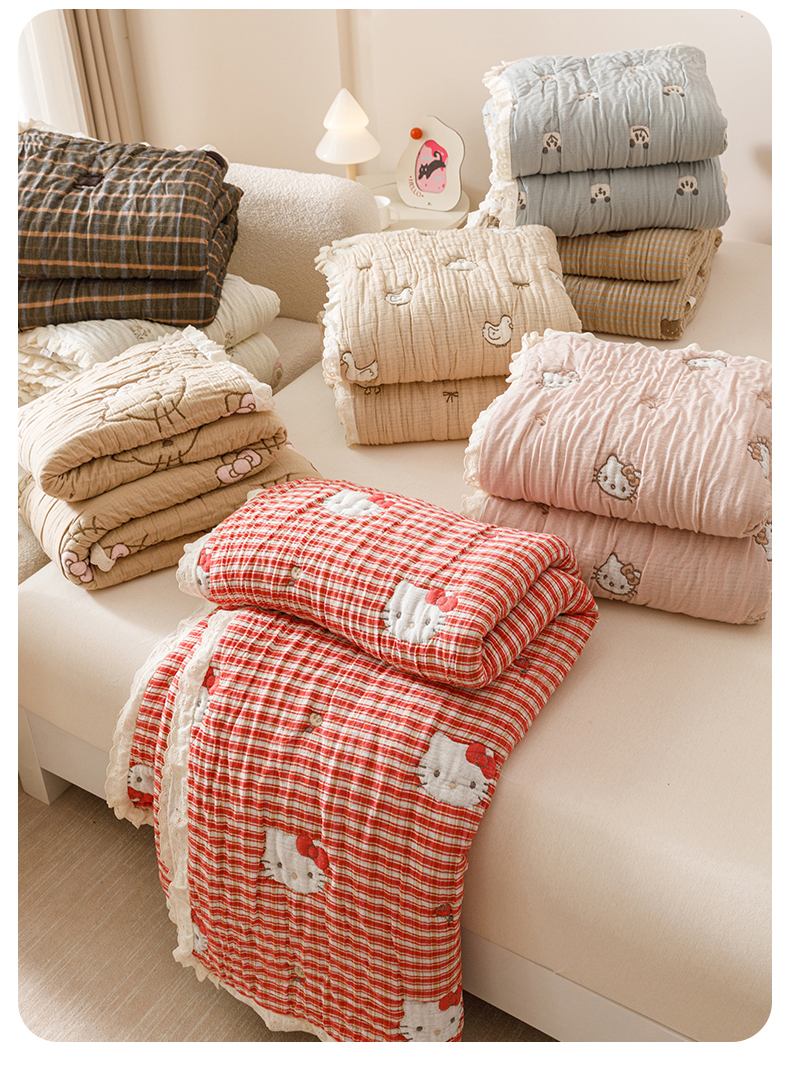 (总)麻依 2025新款安心棉床盖三件全棉四层纱布床单,粉色KT猫,花园小兔,凯蒂的快乐,可爱鸭鸭,可可猫咪-奶茶,可可猫咪-深咖,蓝色熊猫,团团KT,小熊格格,心心领结,欣欣樱桃,雪漫,樱桃兔猫,组合