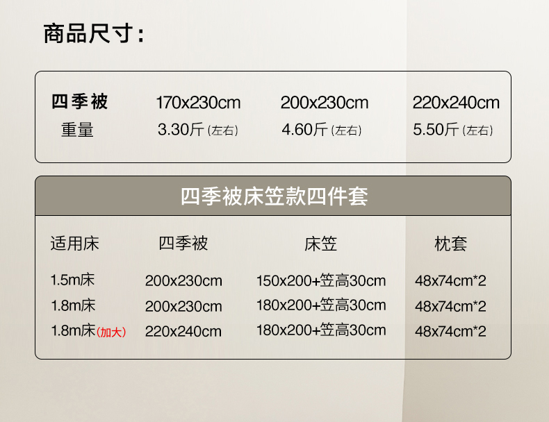 [{"spec_id":212746673,"price":"305.00","is_check_weight":0,"weight":"2.600","number":"39496s3513753g1666302","goods_sku":"39496s3513753g1666302","old_price":"560.00","sale_price":"0.00","point_price":0,"store_price":"0.00","salenum":0,"spec":[{"sp_id":11,"sp_name":"\u989c\u8272","sp_format":2,"sp_value_id":1666,"sp_value_name":"\u843d\u971e\u7c89","sp_value_image":{"id":999,"path":"https:\/\/img3.91jf.com\/ghelp\/2025\/20251021\/20251021093223_751845.jpeg"},"sp_value_video":{"id":0,"img":"","path":"","time":0,"download_num":0,"play_num":0},"sp_sort":0},{"sp_id":27,"sp_name":"\u5c3a\u5bf8","sp_format":1,"sp_value_id":302,"sp_value_name":"170x230cm","sp_value_image":{"id":0,"path":""},"sp_value_video":{"id":0,"img":"","path":"","time":0,"download_num":0,"play_num":0},"sp_sort":5}],"storage":0},{"spec_id":212746674,"price":"335.00","is_check_weight":0,"weight":"3.250","number":"39496s3513753g1666303","goods_sku":"39496s3513753g1666303","old_price":"610.00","sale_price":"0.00","point_price":0,"store_price":"0.00","salenum":0,"spec":[{"sp_id":11,"sp_name":"\u989c\u8272","sp_format":2,"sp_value_id":1666,"sp_value_name":"\u843d\u971e\u7c89","sp_value_image":{"id":999,"path":"https:\/\/img3.91jf.com\/ghelp\/2025\/20251021\/20251021093223_751845.jpeg"},"sp_value_video":{"id":0,"img":"","path":"","time":0,"download_num":0,"play_num":0},"sp_sort":0},{"sp_id":27,"sp_name":"\u5c3a\u5bf8","sp_format":1,"sp_value_id":303,"sp_value_name":"200x230cm","sp_value_image":{"id":0,"path":""},"sp_value_video":{"id":0,"img":"","path":"","time":0,"download_num":0,"play_num":0},"sp_sort":6}],"storage":500},{"spec_id":212746675,"price":"360.00","is_check_weight":0,"weight":"3.500","number":"39496s3513753g1666304","goods_sku":"39496s3513753g1666304","old_price":"660.00","sale_price":"0.00","point_price":0,"store_price":"0.00","salenum":0,"spec":[{"sp_id":11,"sp_name":"\u989c\u8272","sp_format":2,"sp_value_id":1666,"sp_value_name":"\u843d\u971e\u7c89","sp_value_image":{"id":999,"path":"https:\/\/img3.91jf.com\/ghelp\/2025\/20251021\/20251021093223_751845.jpeg"},"sp_value_video":{"id":0,"img":"","path":"","time":0,"download_num":0,"play_num":0},"sp_sort":0},{"sp_id":27,"sp_name":"\u5c3a\u5bf8","sp_format":1,"sp_value_id":304,"sp_value_name":"220x240cm","sp_value_image":{"id":0,"path":""},"sp_value_video":{"id":0,"img":"","path":"","time":0,"download_num":0,"play_num":0},"sp_sort":7}],"storage":500}]