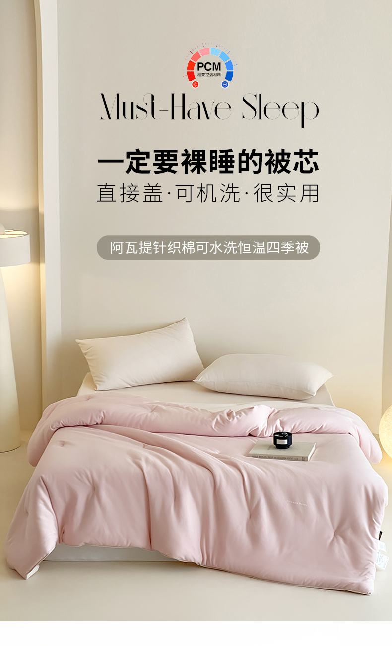 商品名称:丽笙被芯 2025新款阿瓦提针织棉可水洗恒温四季被懒人被被子被芯 落霞粉