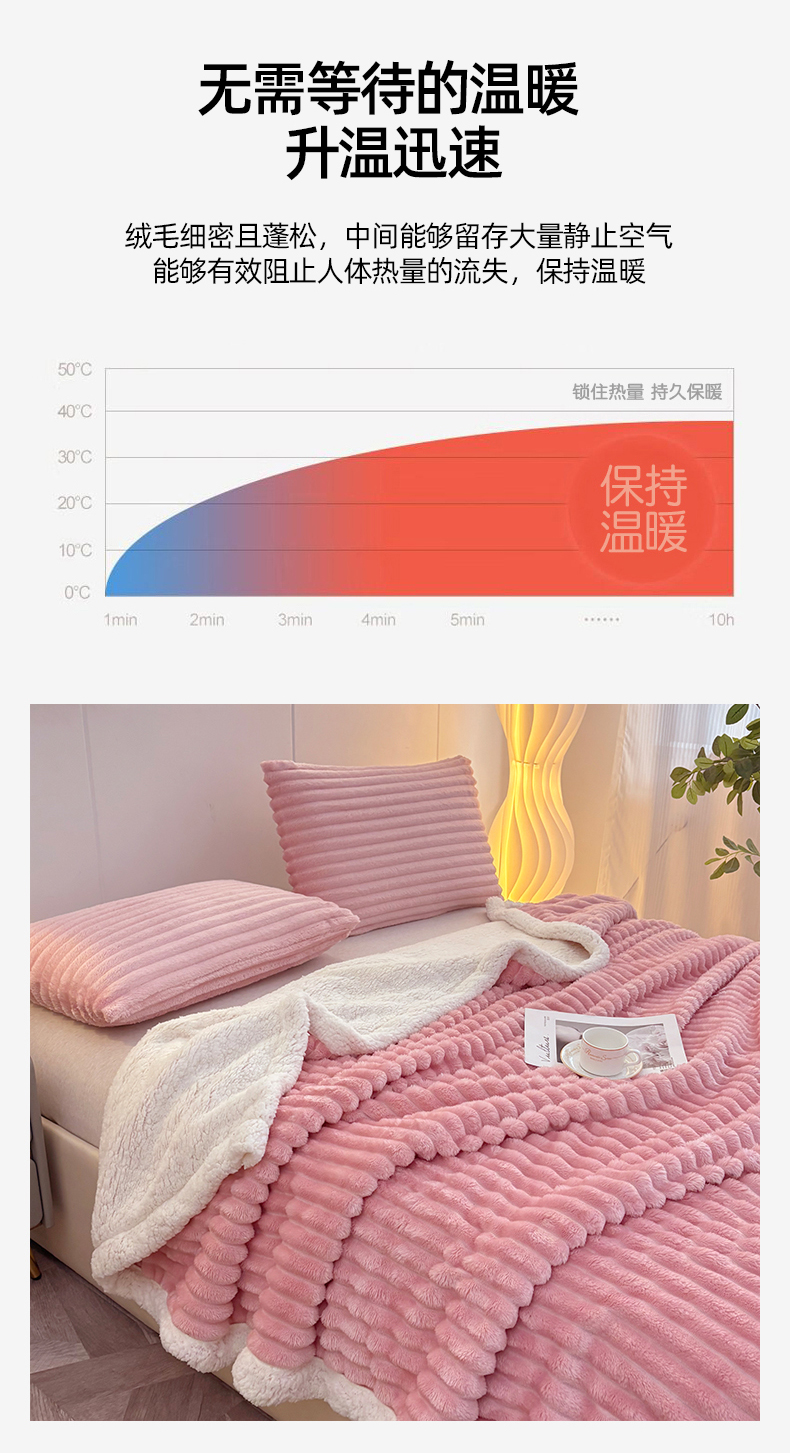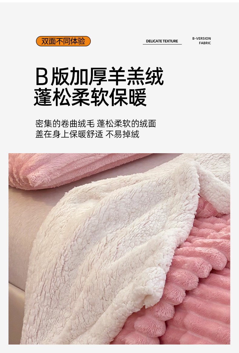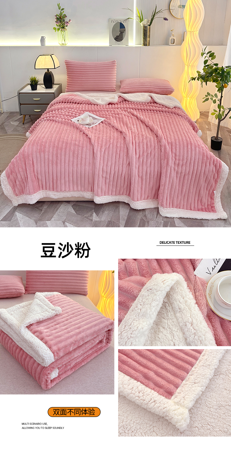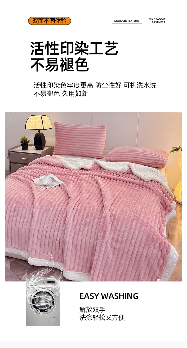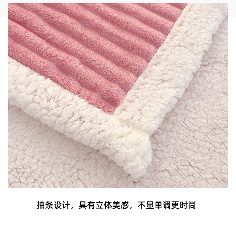 商品名称:枋梢家纺 2025新款仿兔毛绒大抽条羊羔绒毛毯反包双层条纹羊羔绒法兰绒毛毯跨境外贸 豆沙粉