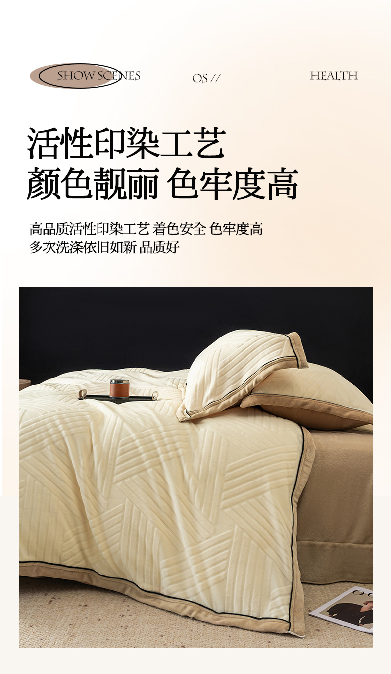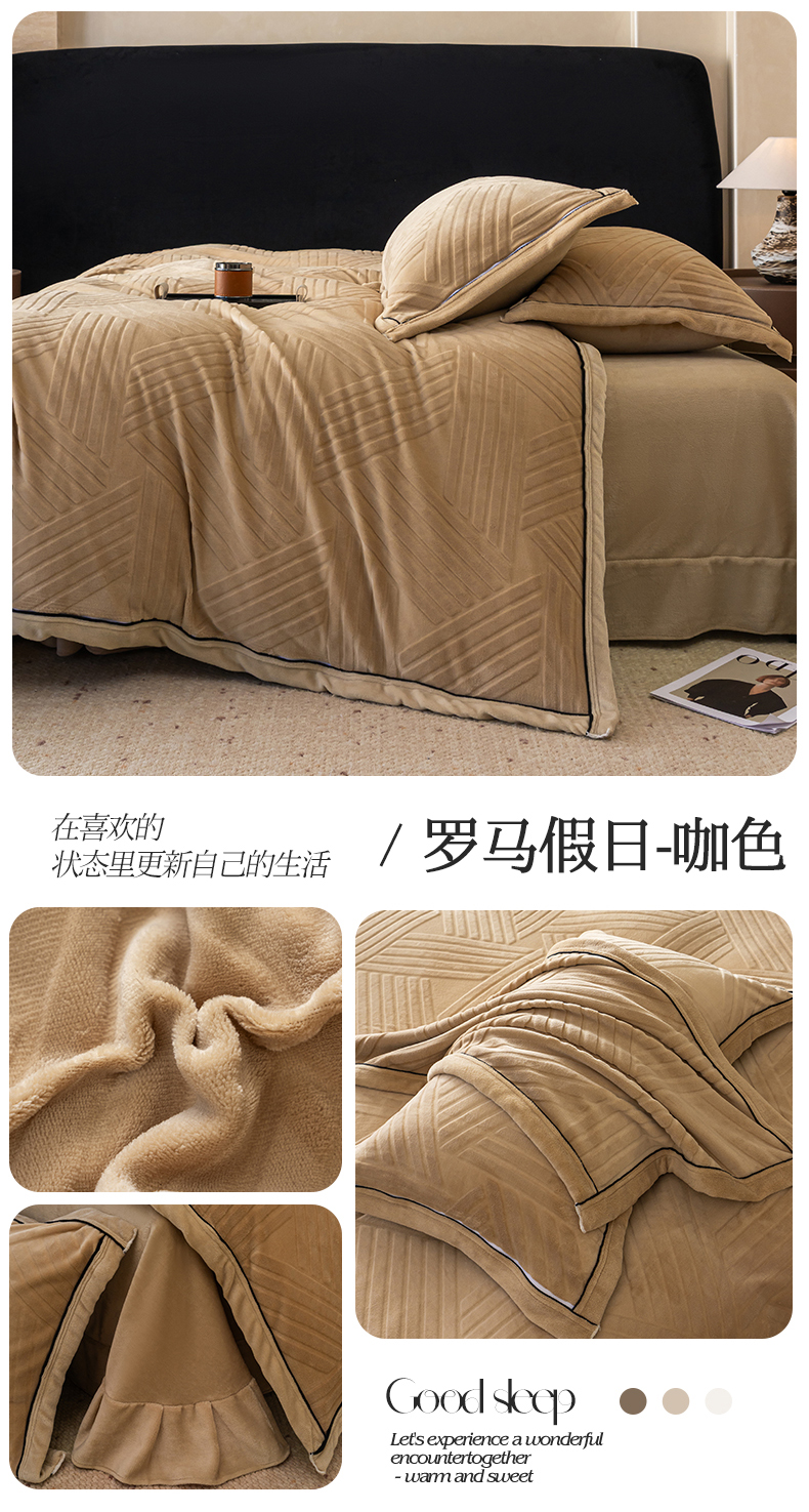 总满座 2025直播爆款高端小方格320克獭兔毛绒立体剪花纯色牛奶绒四件套,奶油咖,典雅灰,蜜桃粉,奶白咖,清新绿,天空蓝,奶油白