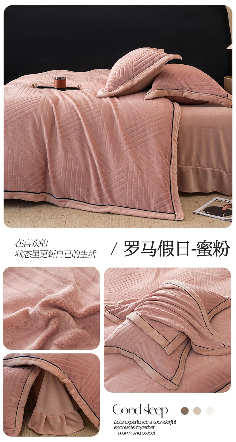 (总)满座家居 2025新款清新唯美木耳边加厚牛奶绒四件套雕花绒四件套,艾莎 粉,雏菊晨露 粉,田园风景 绿,蝶恋花 粉,邂逅,安妮 粉