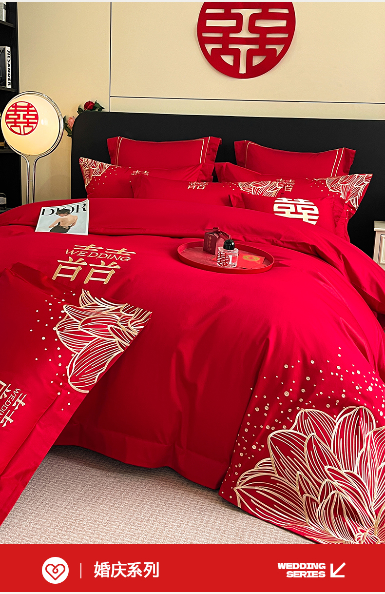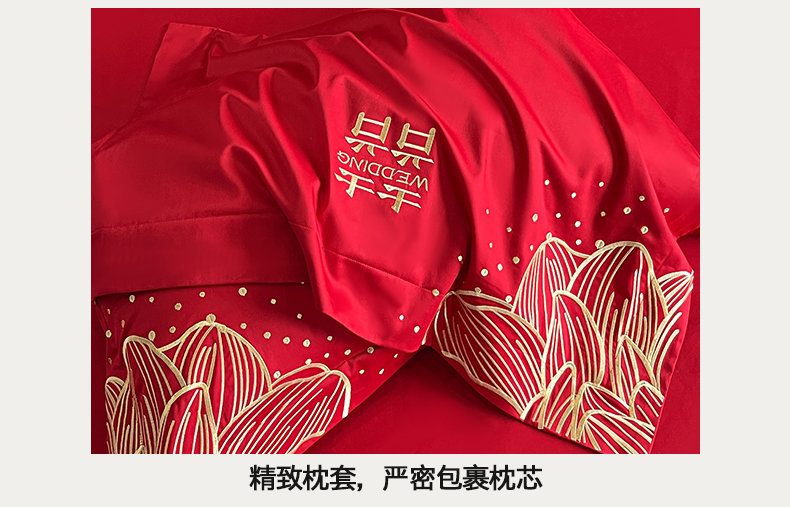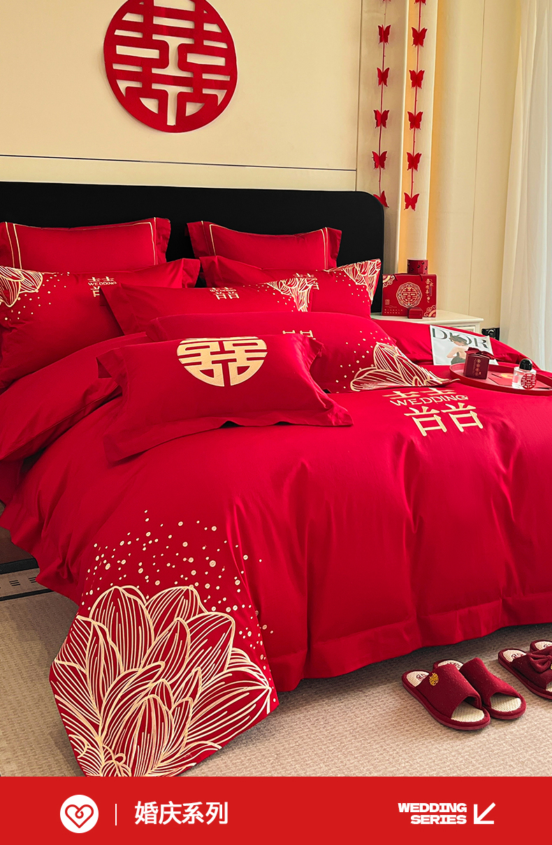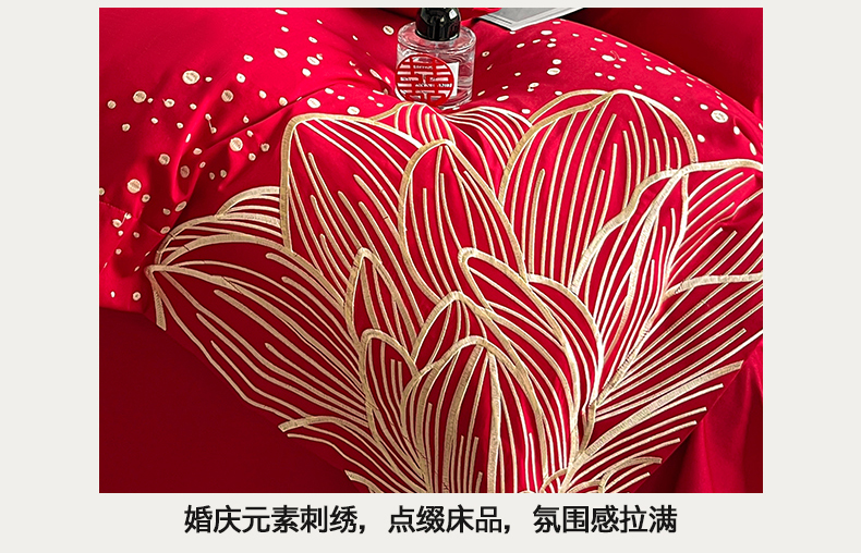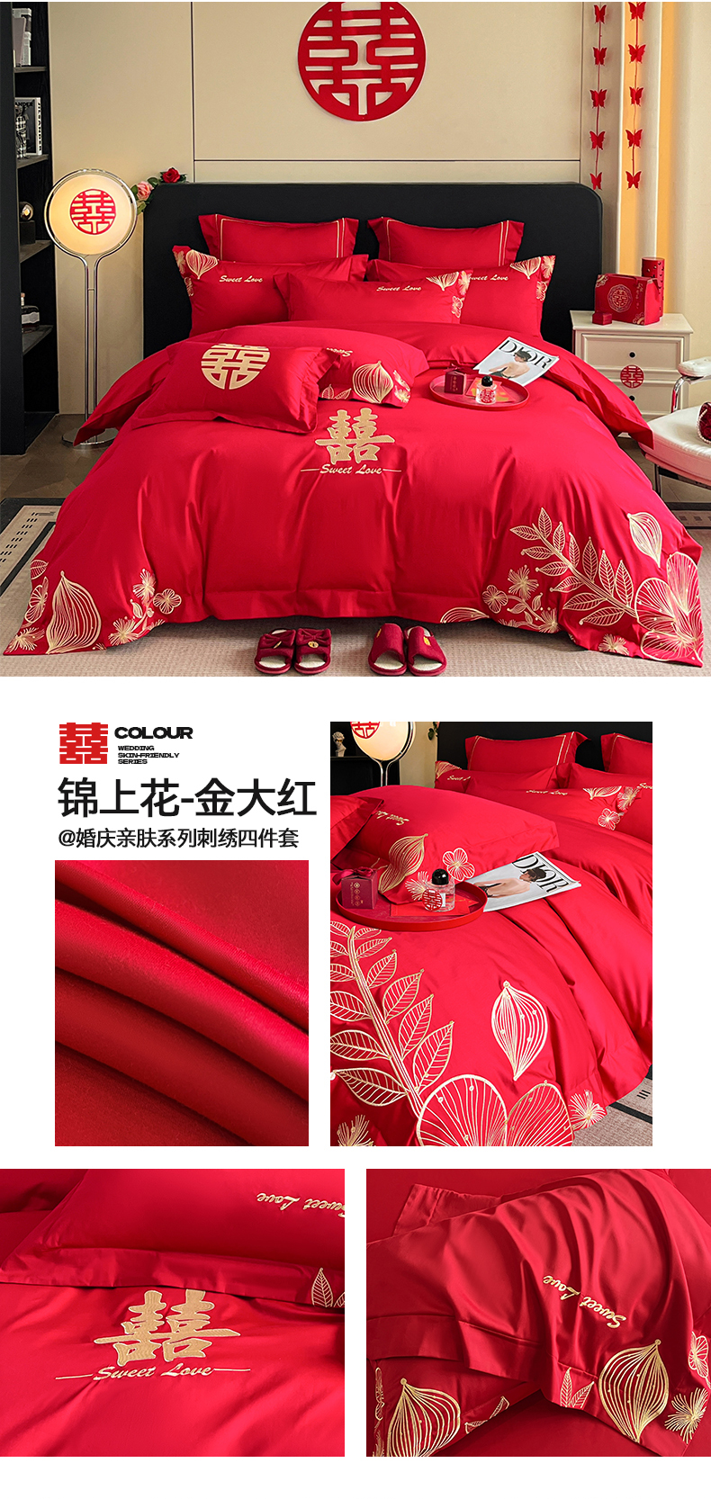 当前位置: 91家纺网 > 商品网购 > 床品套件 > 四件套 > 婚庆四件套 > 置顶家纺 2025新款亲肤刺绣婚庆四件套 幸遇你-金大红