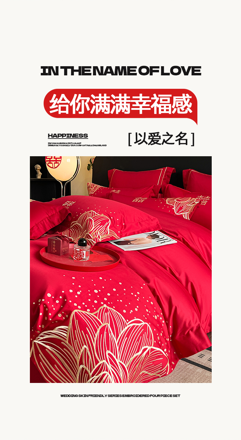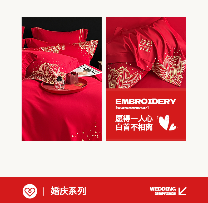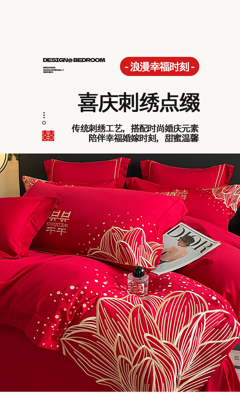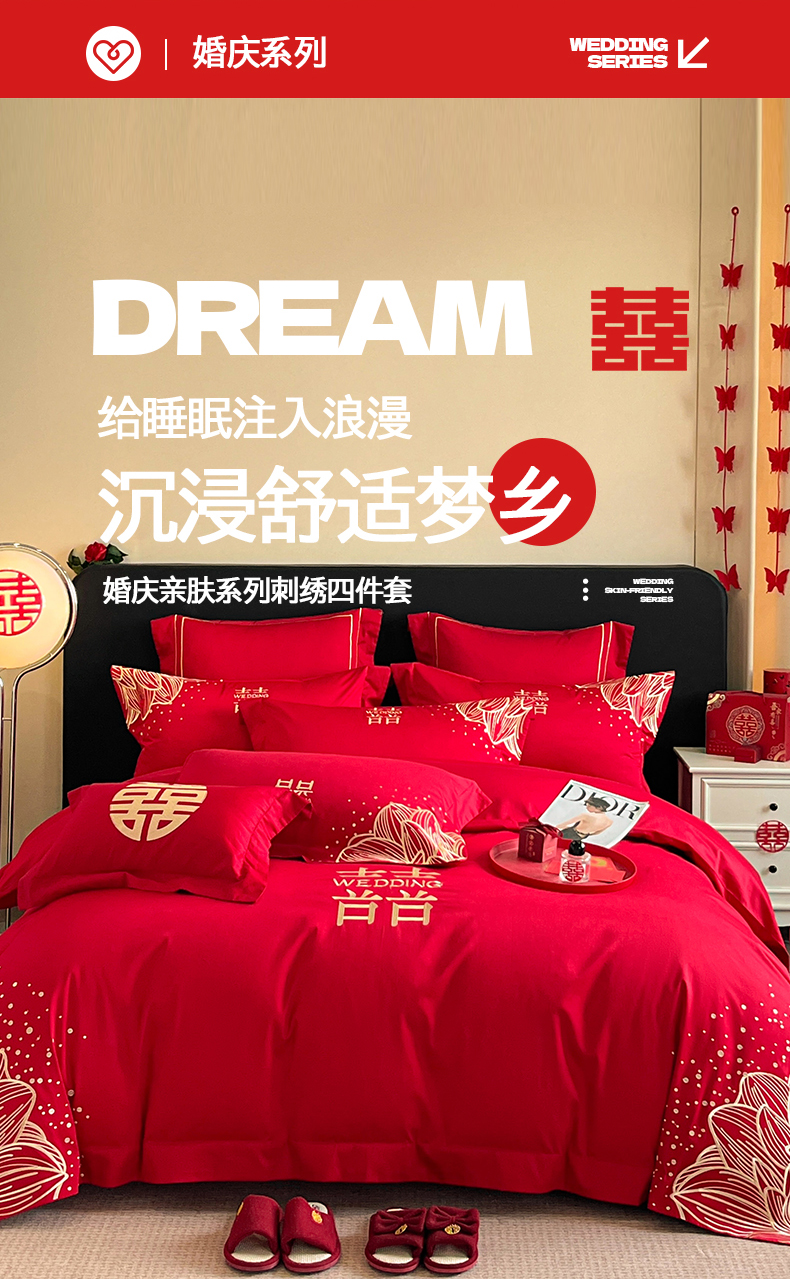当前位置: 91家纺网 > 商品网购 > 床品套件 > 四件套 > 婚庆四件套 > 置顶家纺 2025新款亲肤刺绣婚庆四件套 幸遇你-金大红