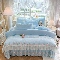 商品名称:漫布云2025秋冬新款11斤230g全消光牛奶绒夹棉床盖款四件套纯色蕾丝花边刺绣床裙款床盖 花韵-婴儿蓝