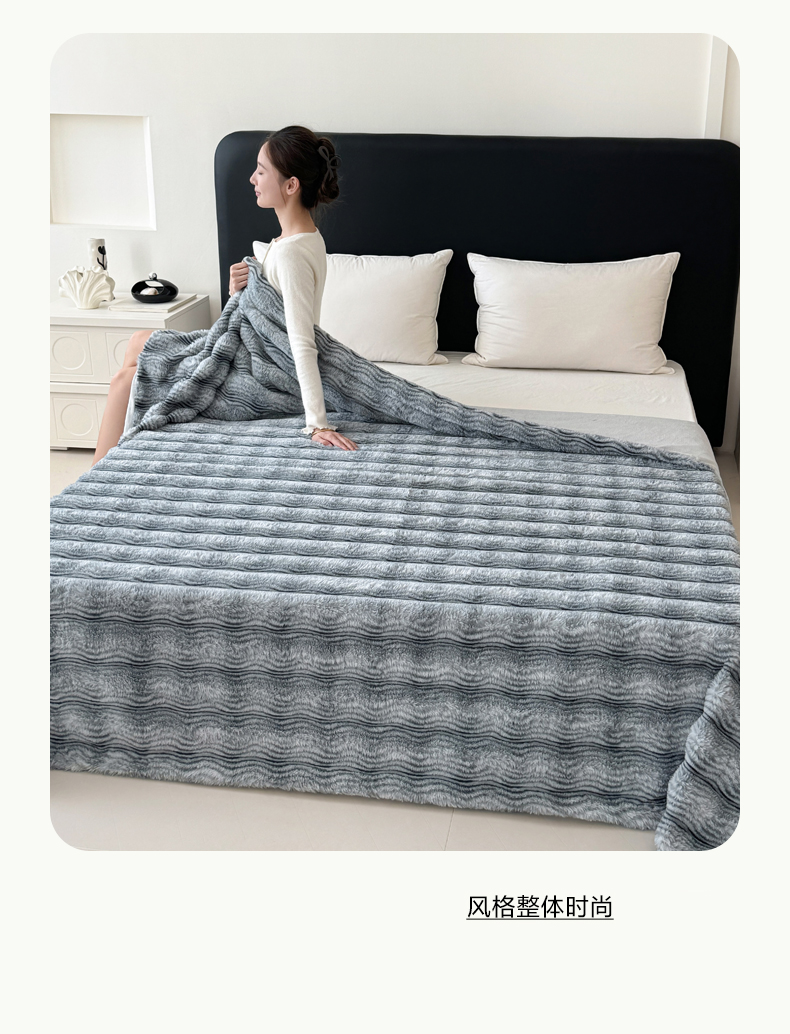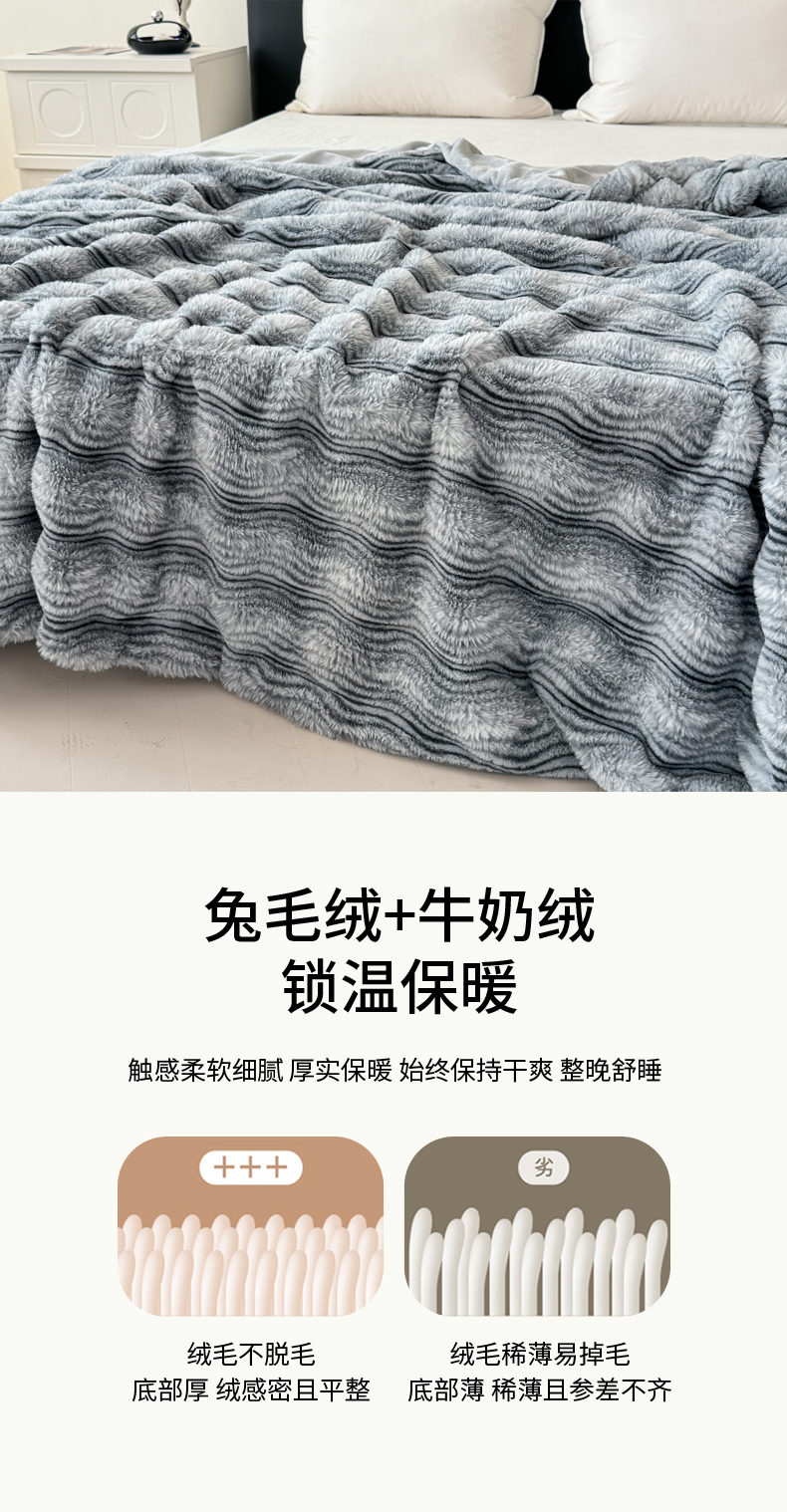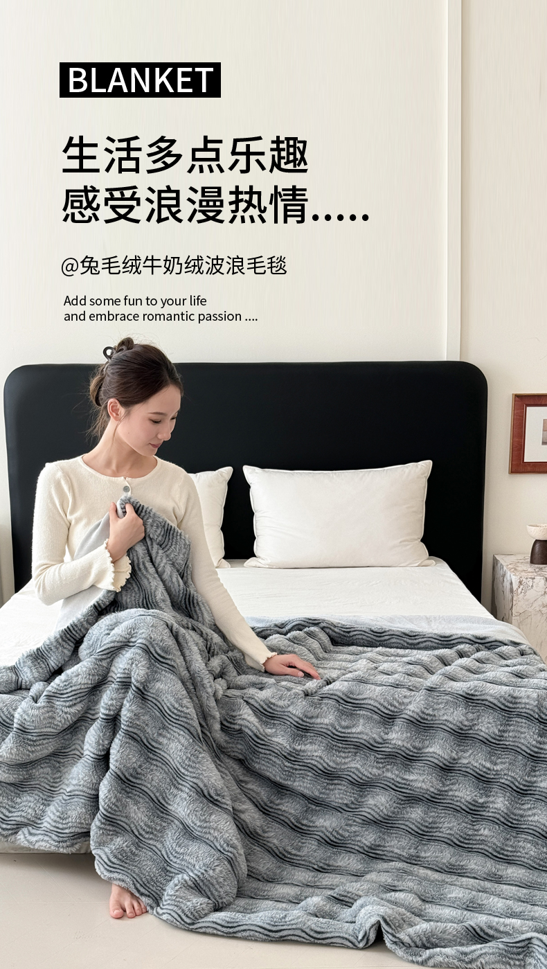 商品名称:丹本家纺 2025新款加厚大兔毛牛奶绒多功能盖毯毛毯毯子 波浪-银灰