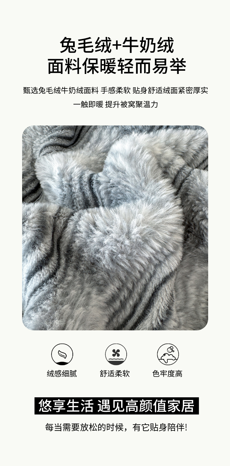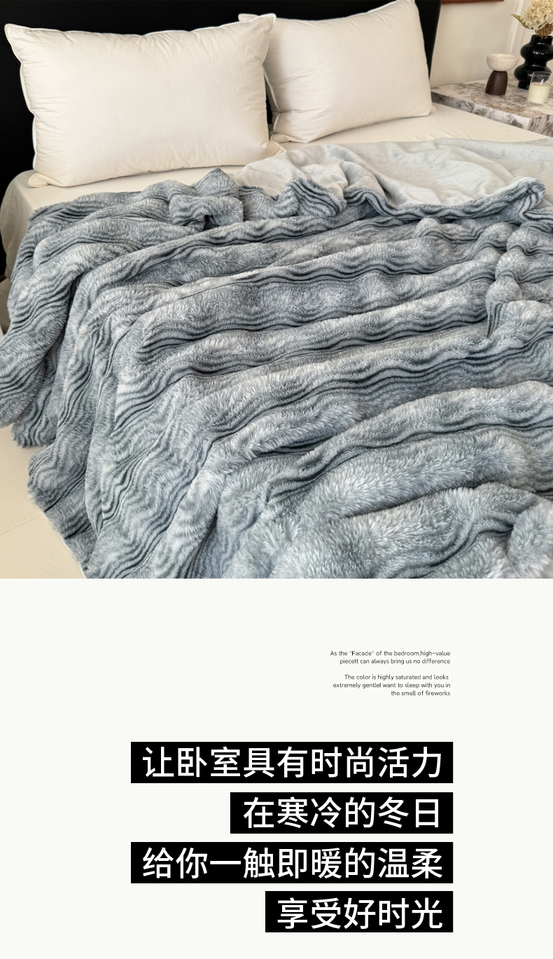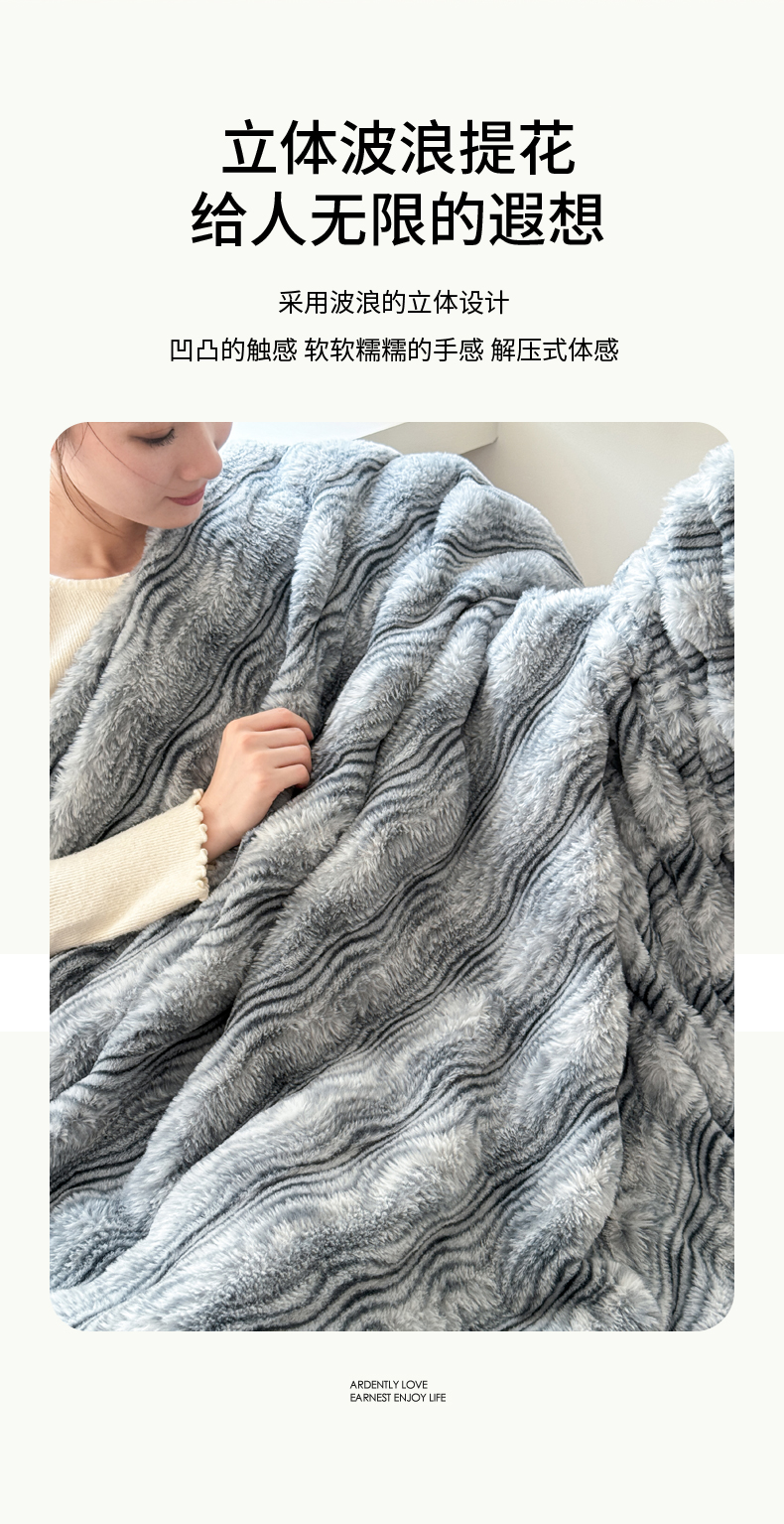 商品名称:丹本家纺 2025新款加厚大兔毛牛奶绒多功能盖毯毛毯毯子 波浪-银灰